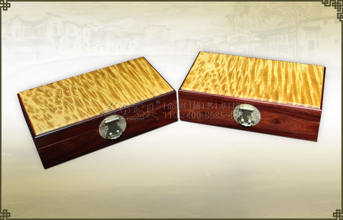 此金絲楠首飾盒與其說它是一個(gè)首飾盒,不如說它是一件藝術(shù)品。金絲楠面板上有著密集清晰的水波紋,華麗高貴,眩美靈動(dòng),褶褶生輝,美不勝收。小葉紫檀低調(diào)穩(wěn)重、淳厚含蓄,既能更突...