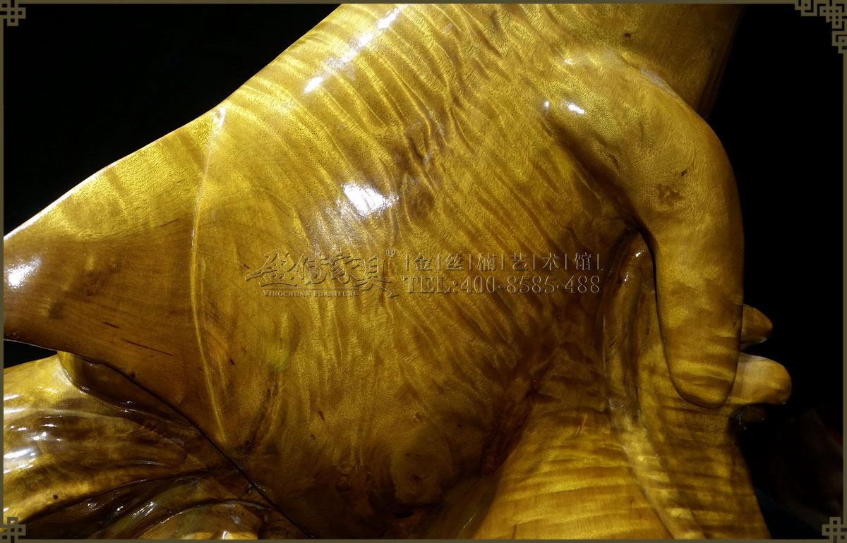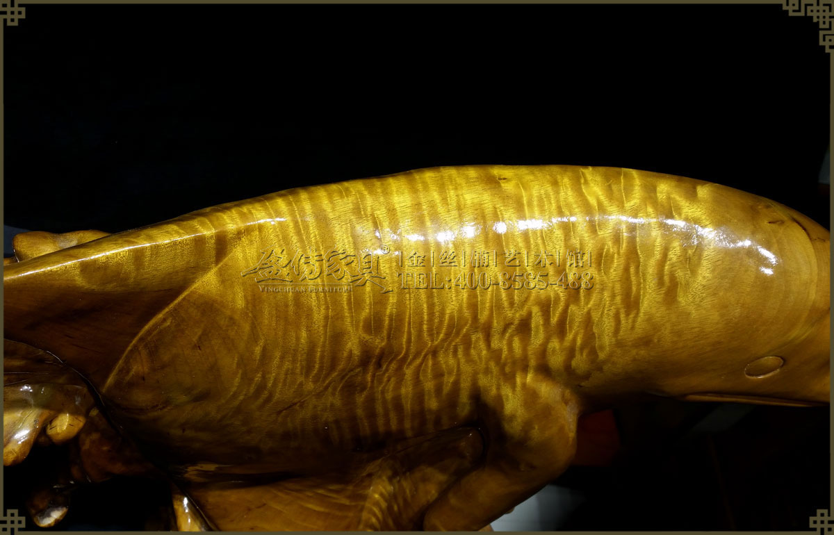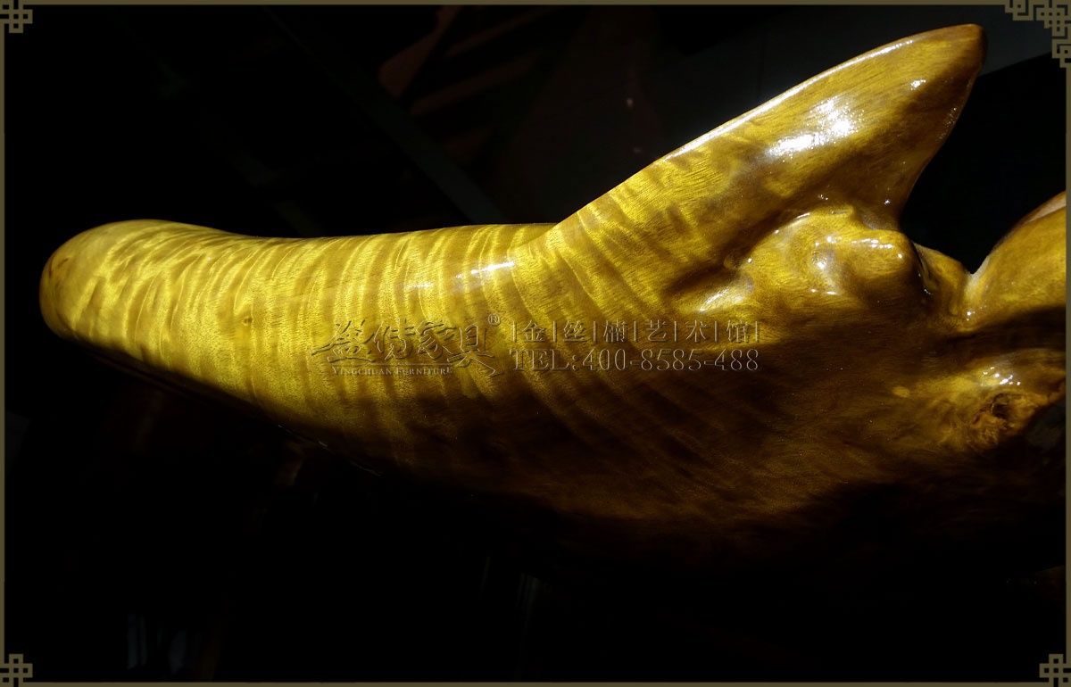 此金絲楠海豚布滿水波紋,層層疊疊,清晰明亮,褶褶生輝,非常美麗耀眼。圓潤的造型十分可愛可親,散發著清新純真的氣質,能提高空間的檔次和自然氣息,無論是送禮還是自用都是佳品。