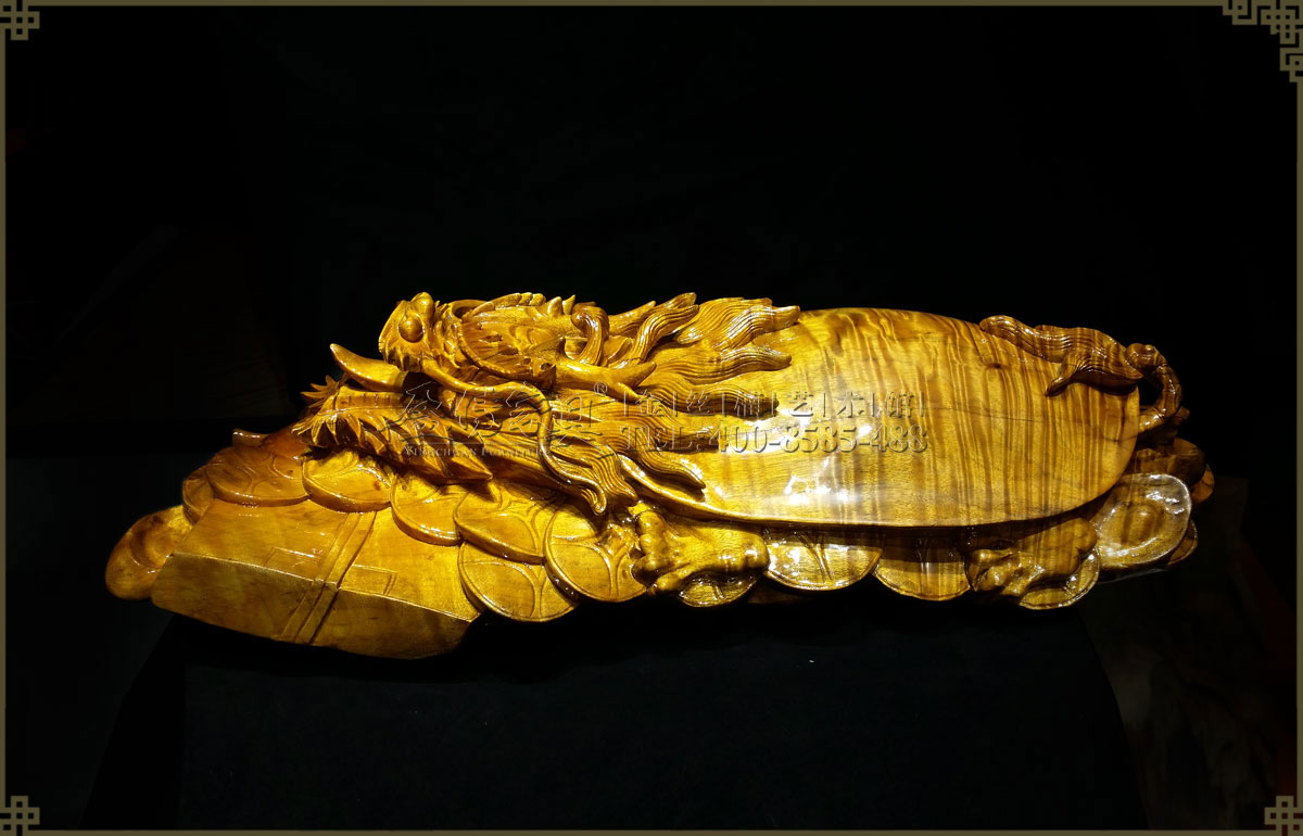 龍龜有神靈大龜之稱,寓意為世人擋災煞,減禍害。同樣具長壽吉祥,鎮煞迎福的喻意。此龍龜伏在大堆錢幣上,更有廣納“正財”福祿的象征和作用。