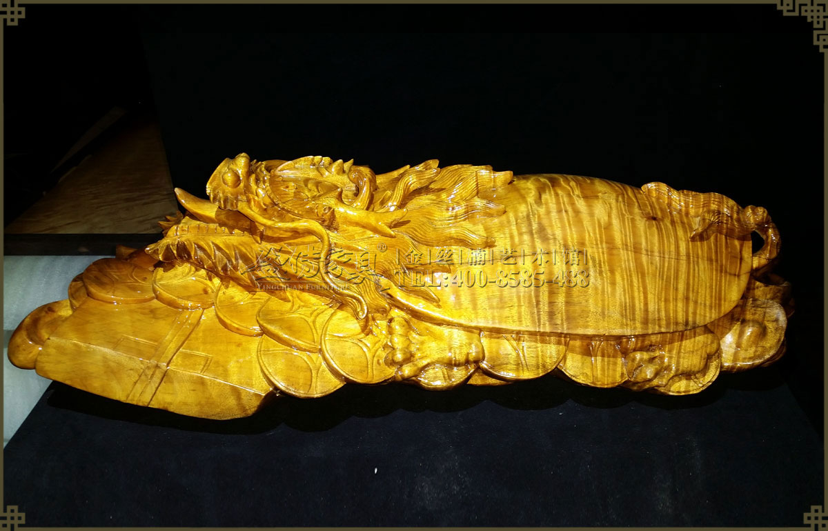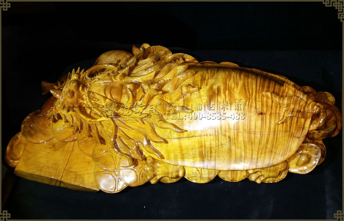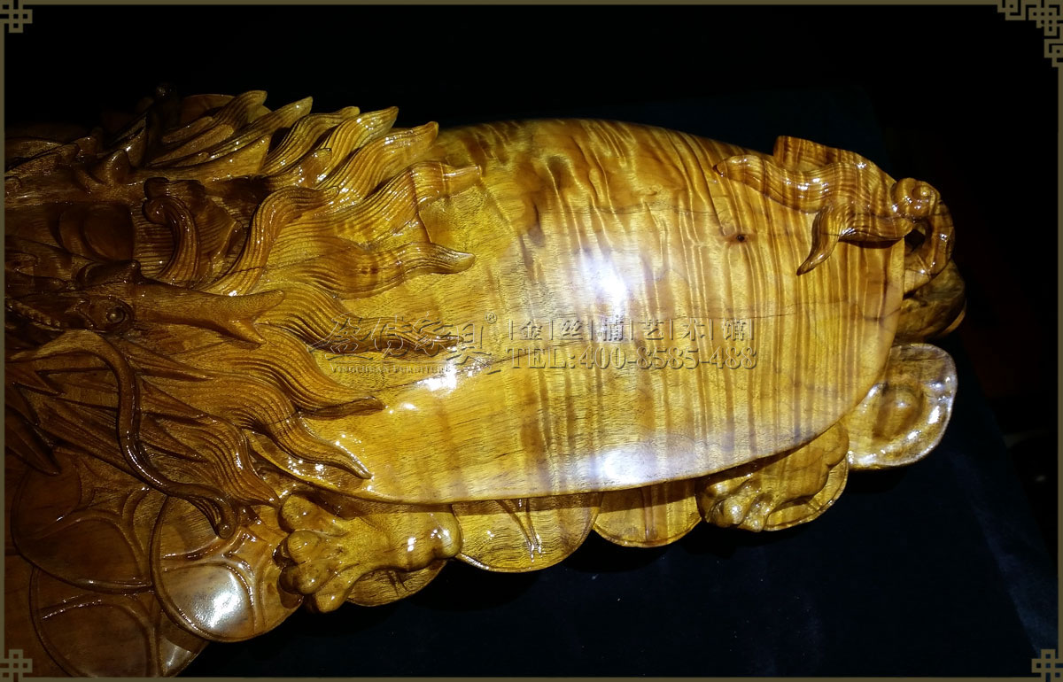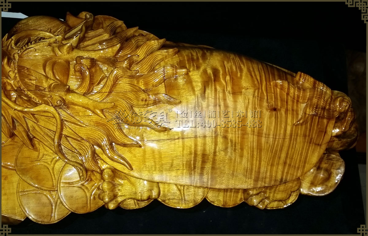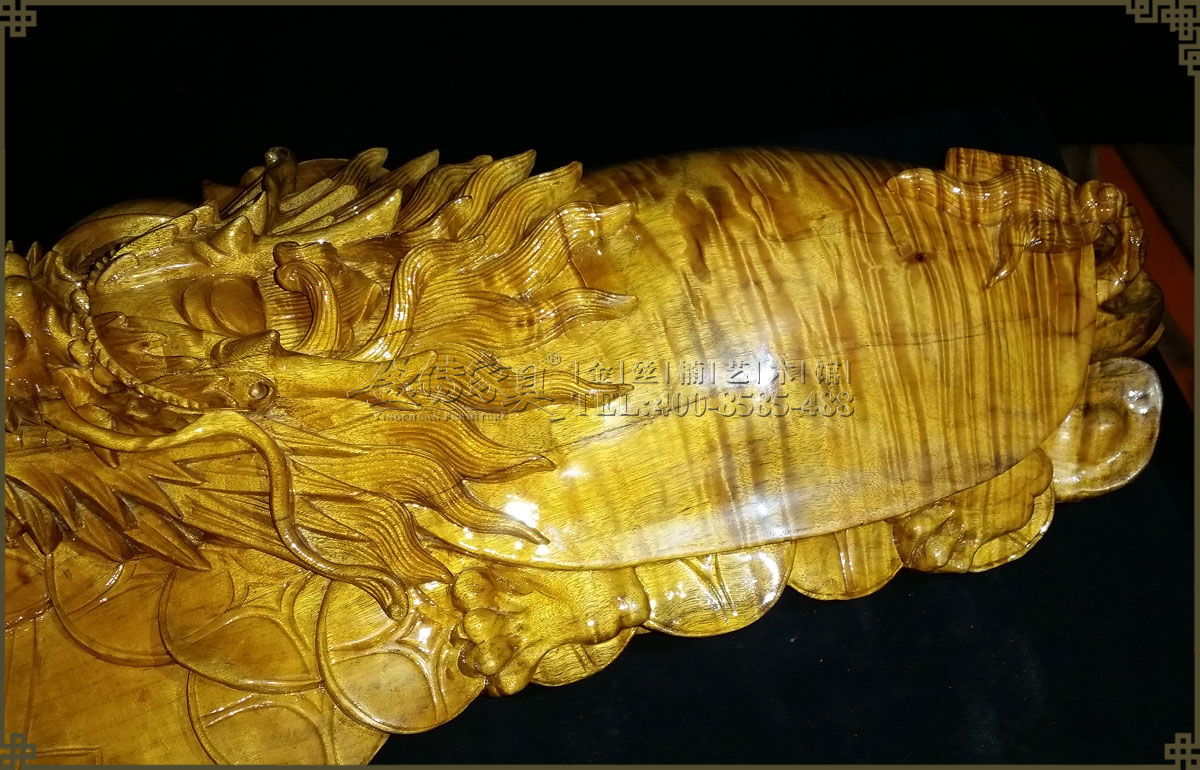 工藝家精心手工雕刻,追求細節完美,十分精致細膩,栩栩如生,威風凜凜充滿靈性。外觀色澤明亮,金光閃閃,有著清晰整齊密集的水波紋,是金絲楠藝術品中的精品之作,有很高的收藏價值。