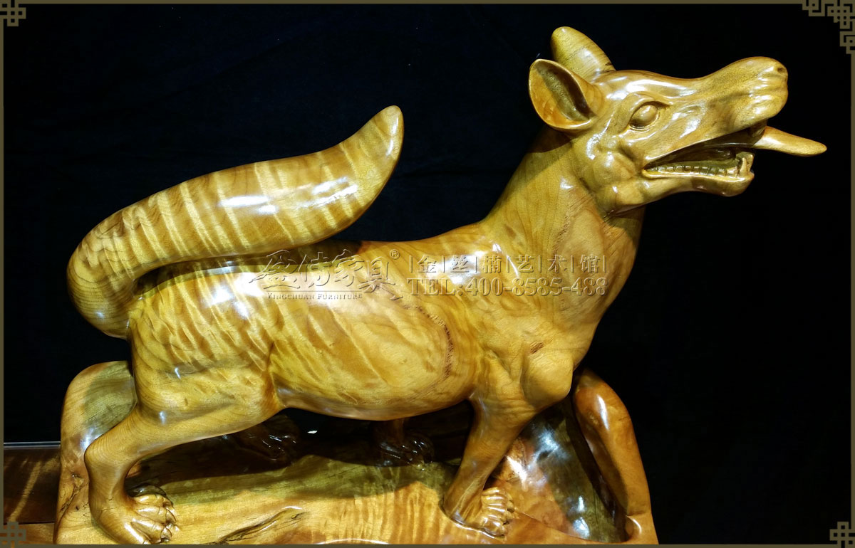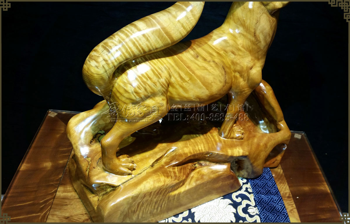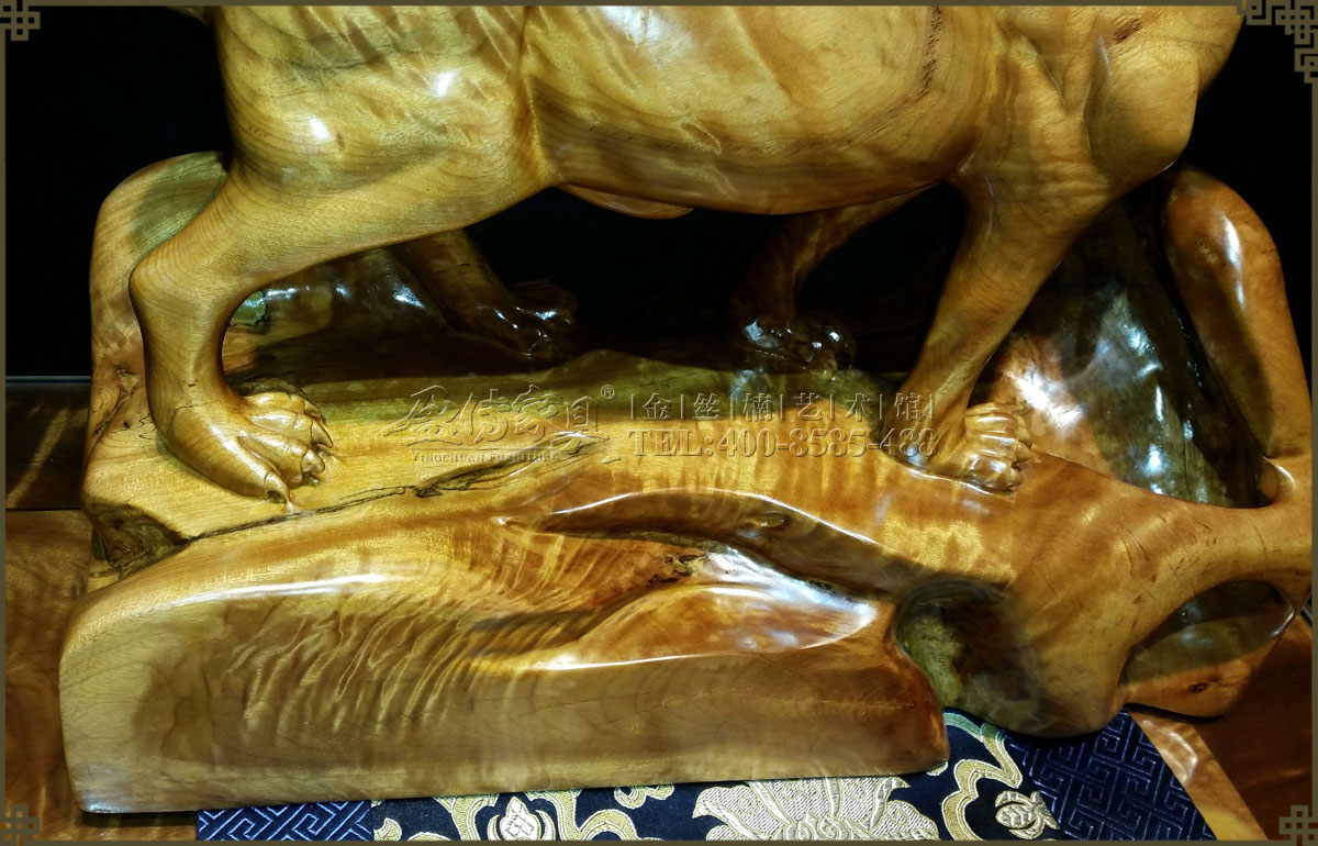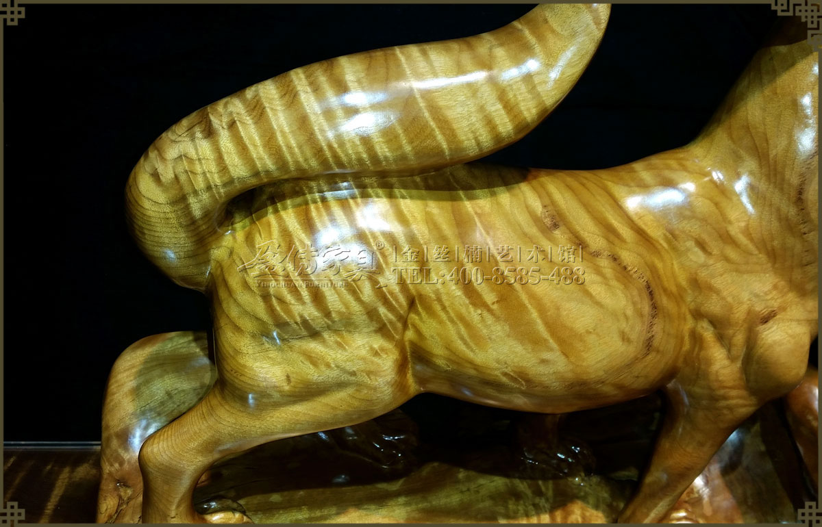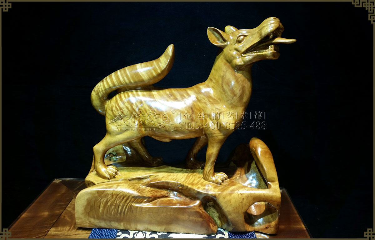 中國(guó)人把狗視為吉利的動(dòng)物,能招來(lái)財(cái)富,預(yù)示前兆,更可保衛(wèi)自己或防竊、甚至改善人際關(guān)系。此金絲楠旺財(cái)犬做工考究,雕工細(xì)膩,線條流暢,雄壯矯健,威武神氣,栩栩如生,極富個(gè)性。其身上的水波紋如行云流水,密集清晰,褶褶生輝,閃耀奪目,非常美麗,有著極高的觀賞價(jià)值和收藏價(jià)值。