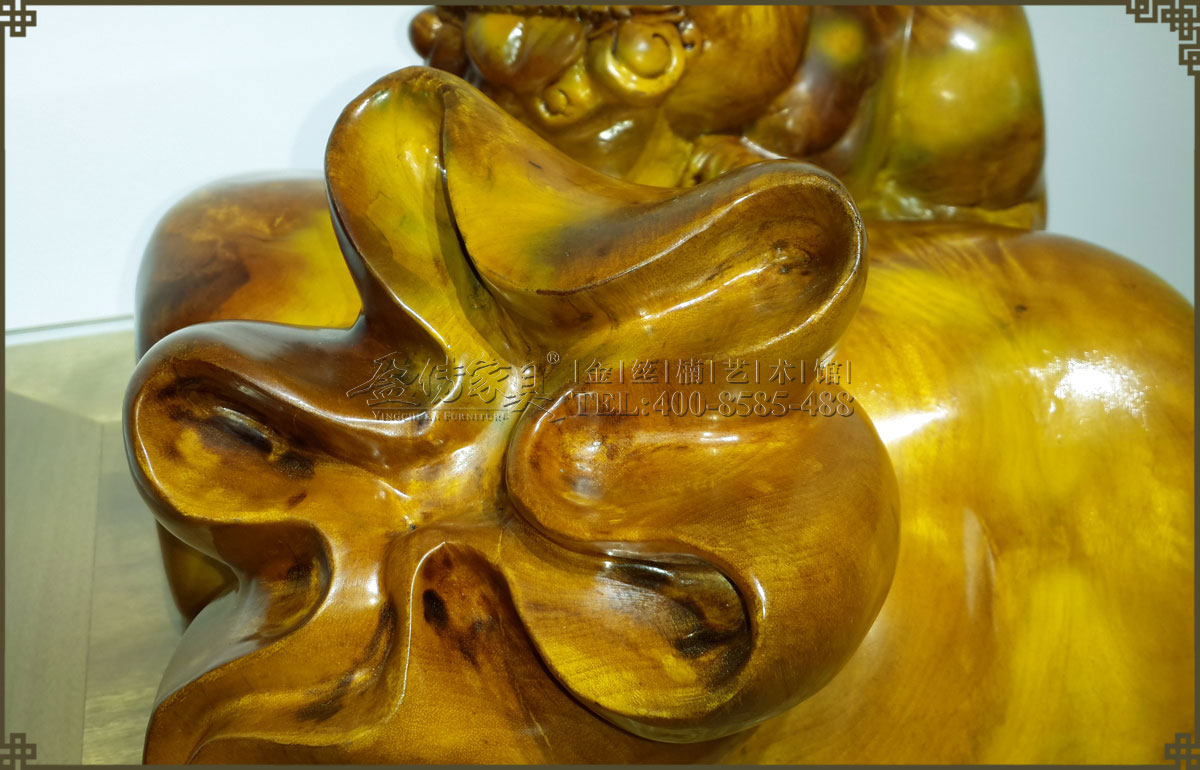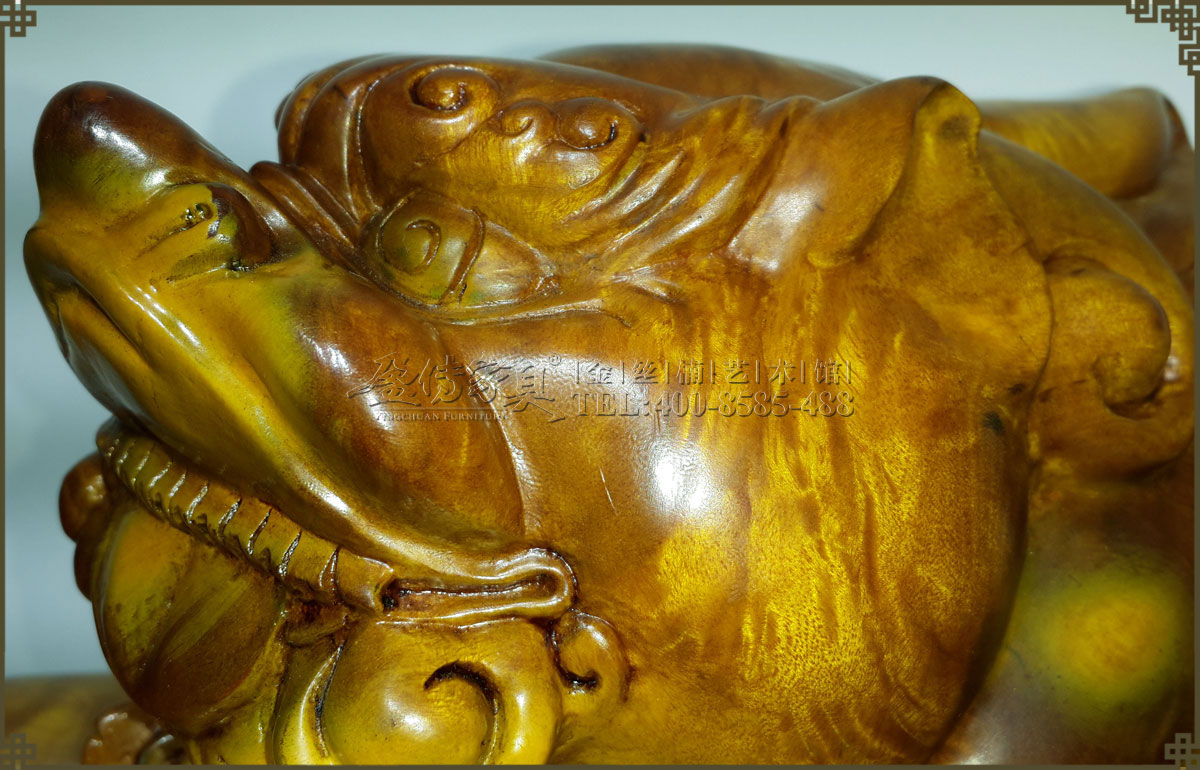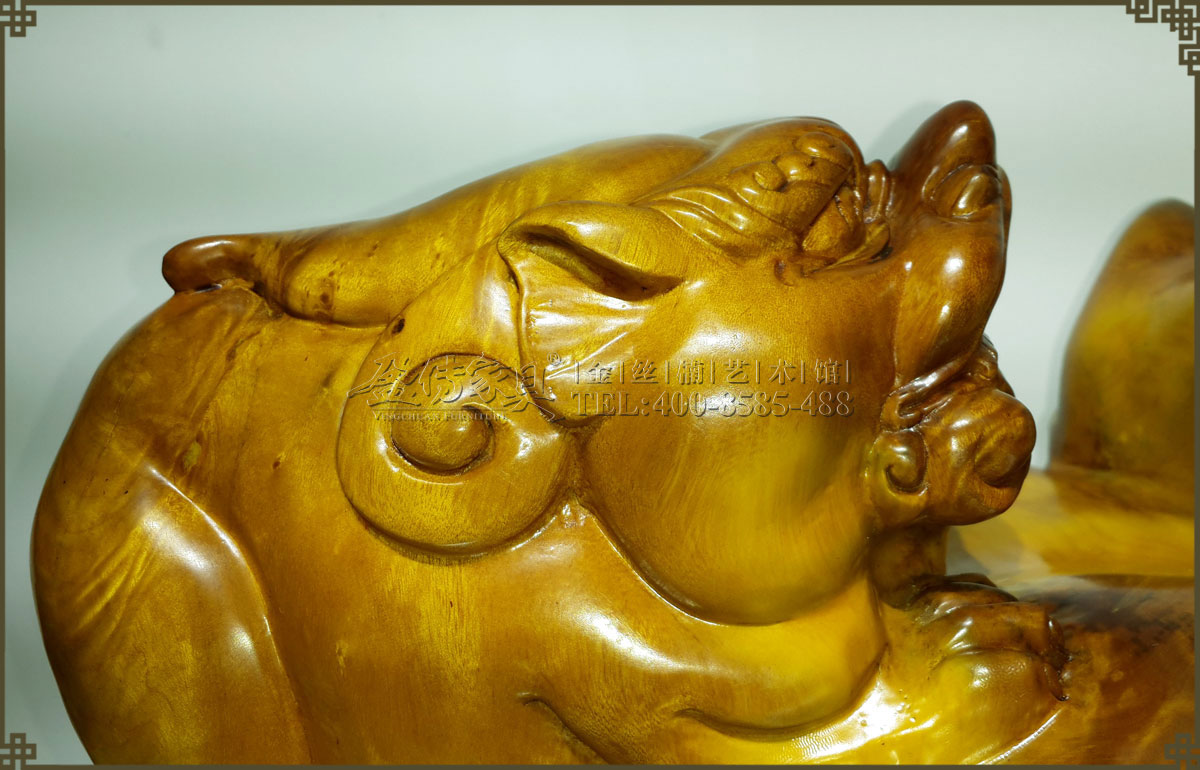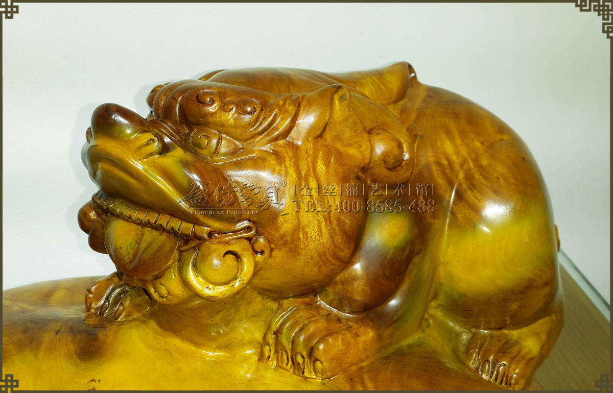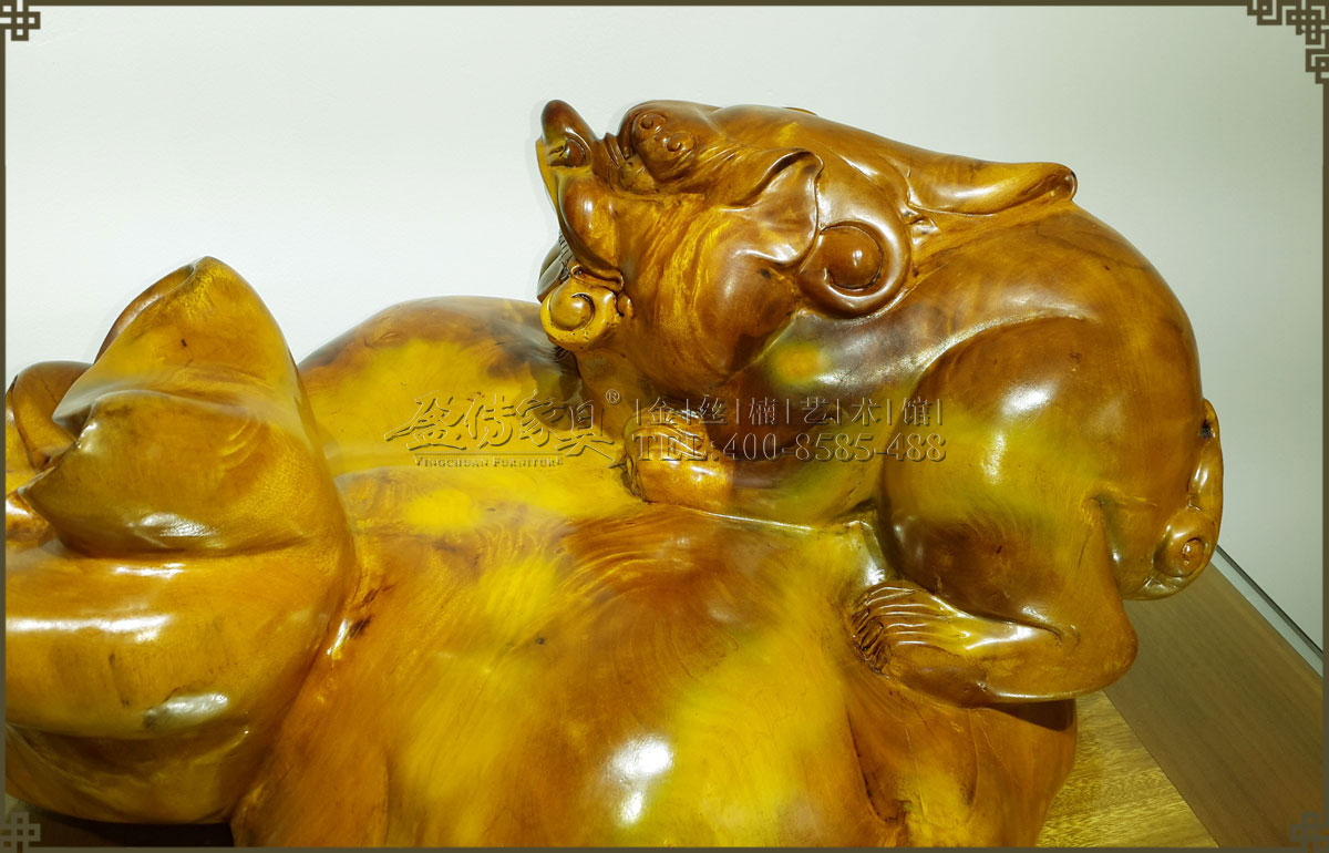 工藝大師雕刻工藝精湛,此金絲楠貔貅伏在錢袋上,強壯肥碩,精神威武又不失可愛,很少看到面部刻畫如此細膩的貔貅。大大的錢袋更是利于招財進寶,財源廣進。整體質地上乘,線條流暢,高貴華美,精美絕倫,是難道的金絲楠精品擺件,收藏和饋贈的明智之選。