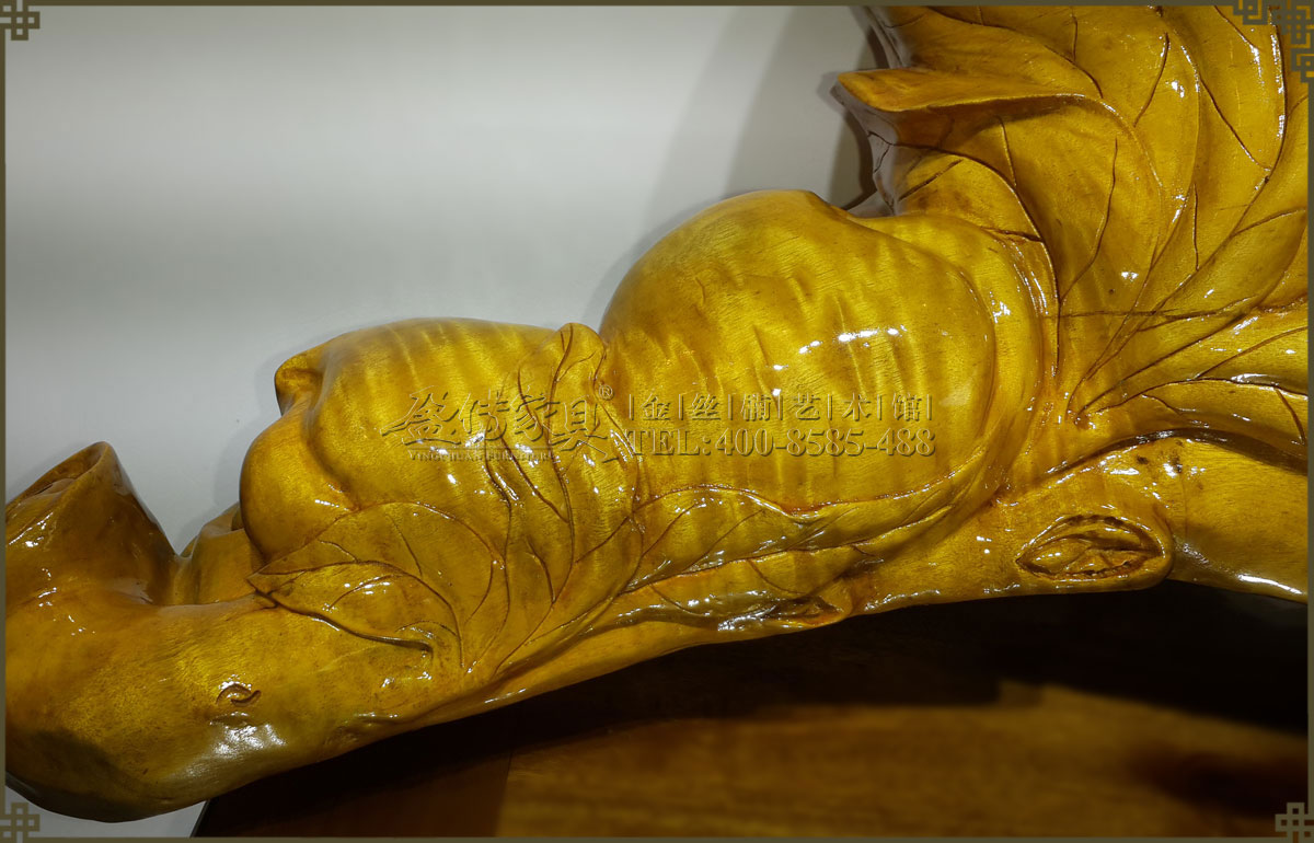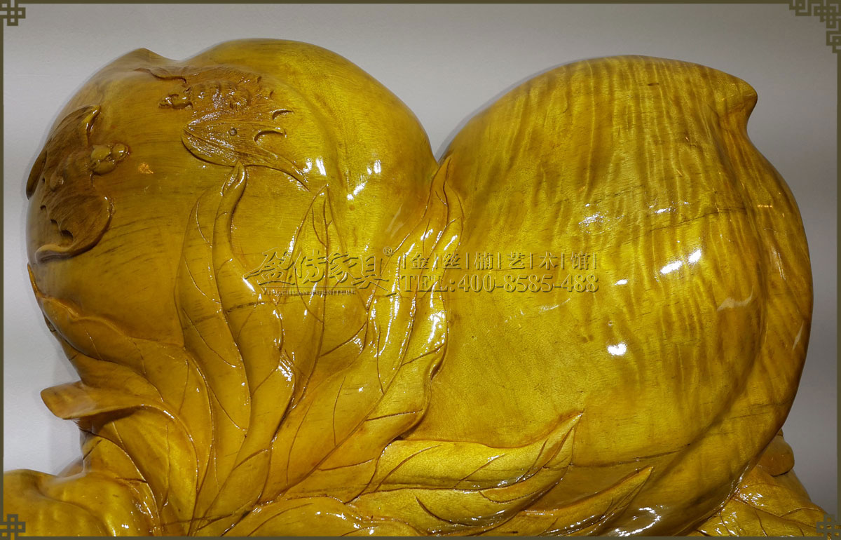送壽桃是中國傳統習俗之一,象征著晚輩對老前輩的孝敬,每當老年人過生日時,做兒女的都要送壽桃給老人,以祝老人健康、長壽,幸福。此藝術擺件更雕有兩只蝙蝠伏于壽桃之上,寓意“多福多壽”,是送親人、送老前輩、送老領導的最佳禮物。