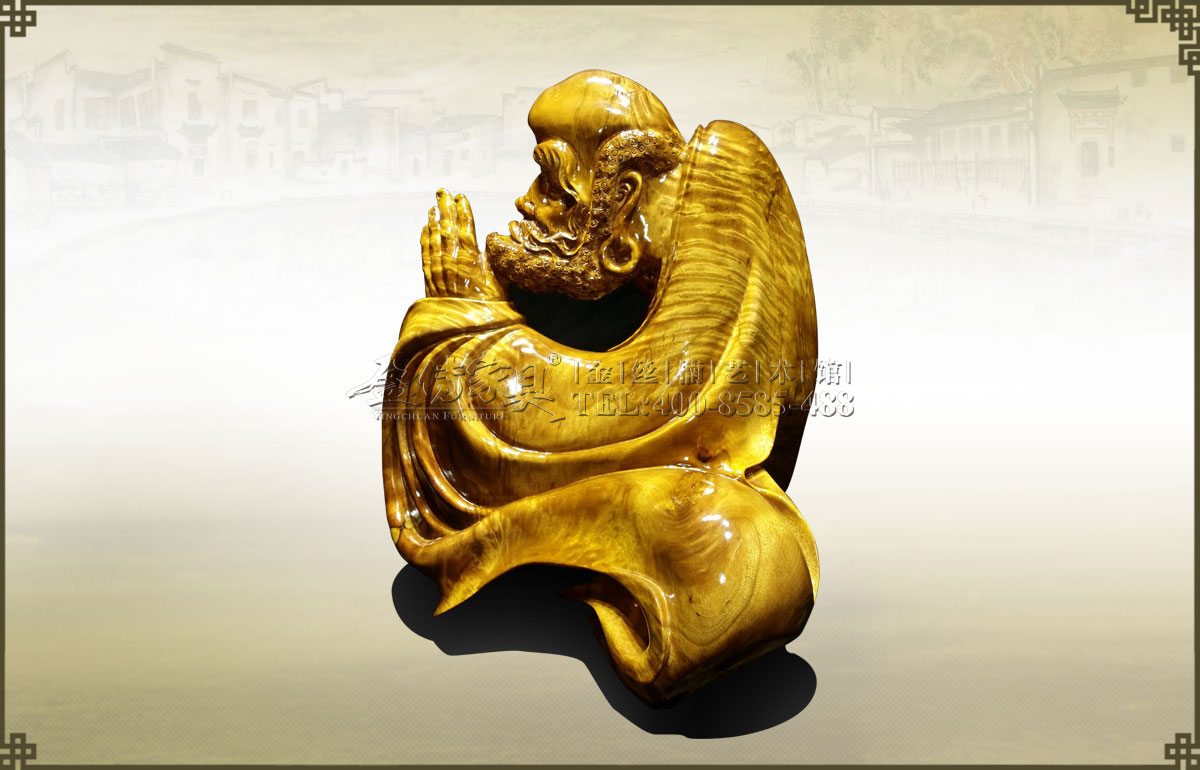 此金絲楠達(dá)摩雕刻十分精細(xì),面部表情入木三分,惟妙惟肖,工藝家將其面壁枯坐九年的精神形象完美展示出來。且水波紋非常豐富清晰,整體十分華麗尊貴,具有很高的藝術(shù)價值和欣賞價值...