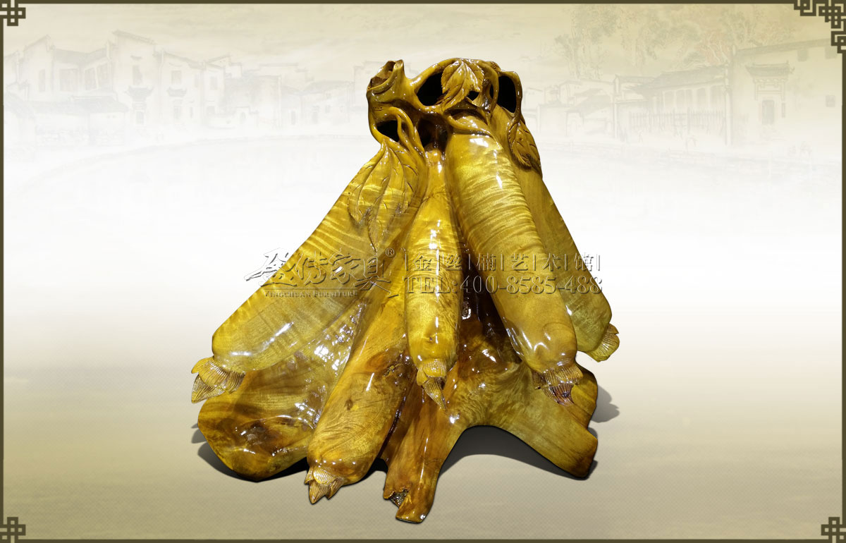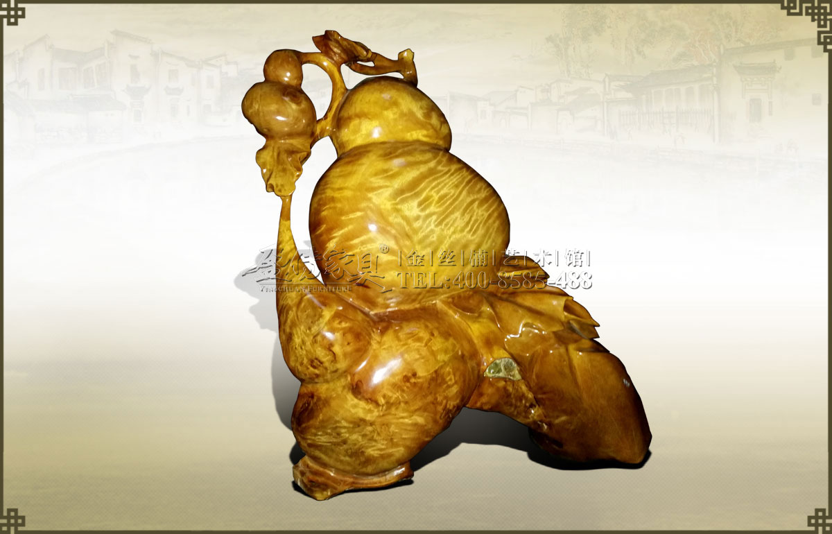 葫蘆諧音“福祿”、“護(hù)祿”,古人認(rèn)為它可祛病益壽,驅(qū)災(zāi)辟邪,祈求幸福,使子孫人丁興旺。 此金絲楠葫蘆色澤明亮,金光閃閃,褶褶生輝,紋理如行云流水,給人以喜氣祥和的...
