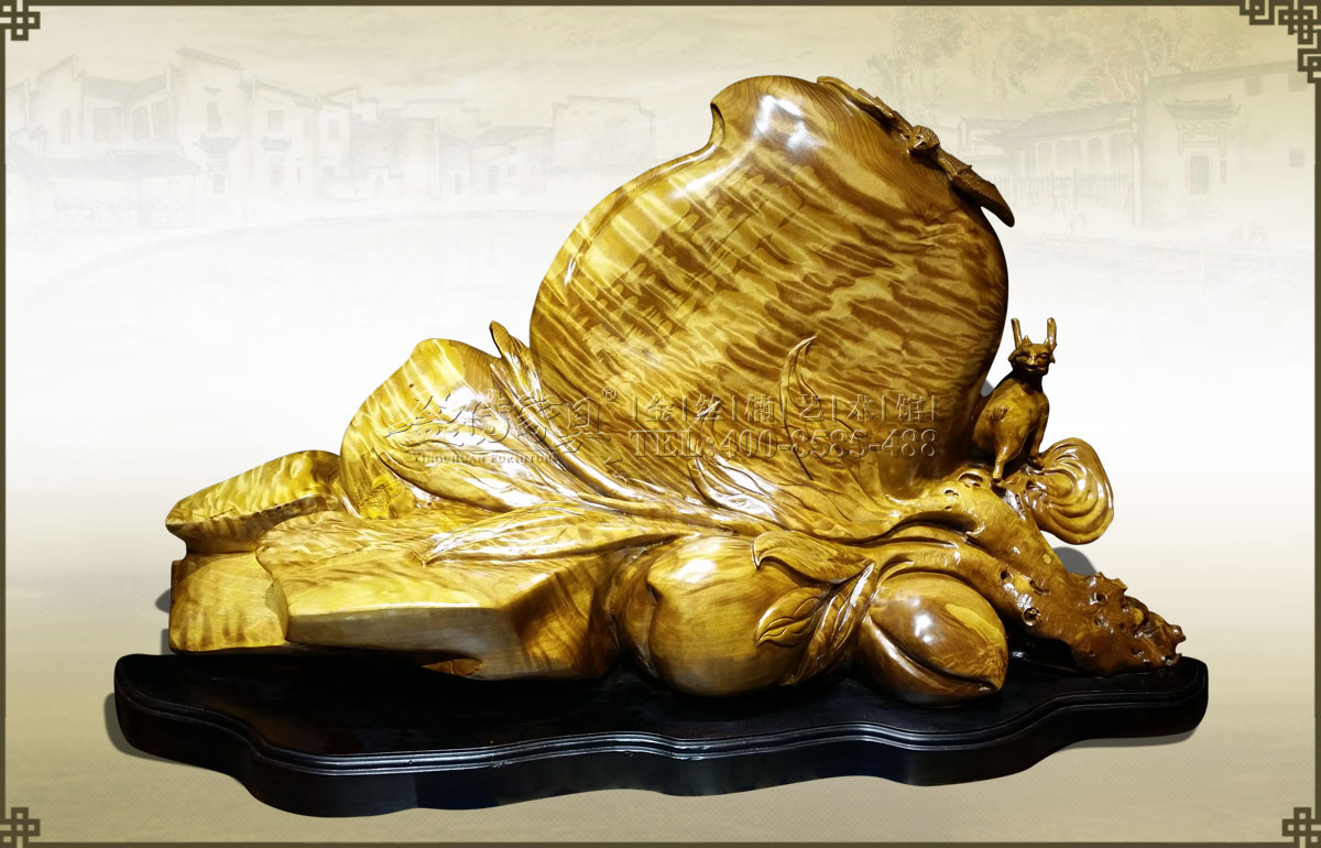 自古以來,壽桃是祝壽文化中必不可少的元素。蝙蝠的“蝠”諧音“福”,鹿諧音“祿”,桃、蝙蝠和鹿的組合寓意“福祿壽皆存”。 而且,此金絲楠壽桃藝術(shù)擺件極為漂亮,枝葉、果實(shí)疏...
