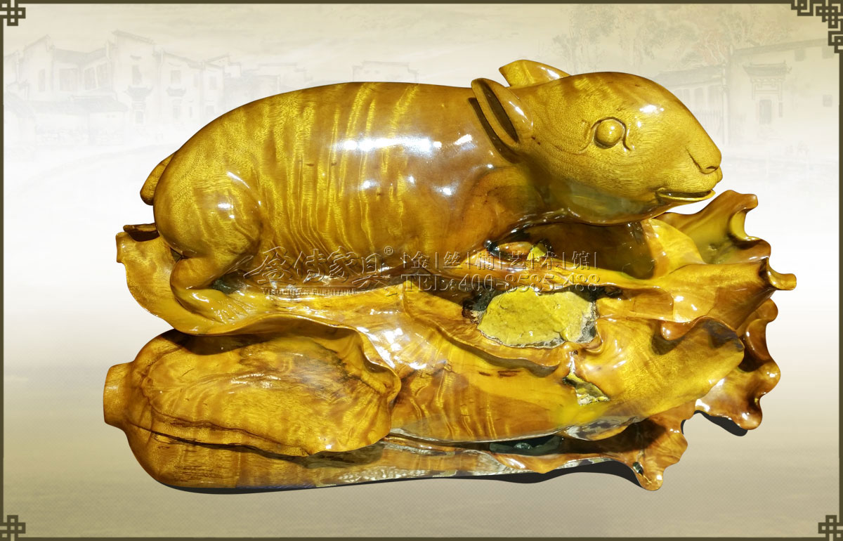 兔子是機(jī)敏和幸運(yùn)的象征,也寓意祥和和希望。此金絲楠兔子紋理獨(dú)特,光線的變化使其有千變?nèi)f化的光影效果,移步換景,褶褶生輝,魅力四射,奇特美麗,攝人心魄。雕工細(xì)膩,可愛精致...