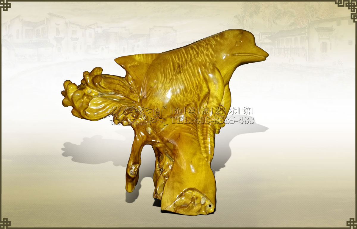 畫家直接以金絲楠板為底,在板上作畫。板子的水波紋紋路特別清晰、立體感強(qiáng)。漂亮自然,色澤明亮,褶褶生輝,本身就具備很高的收藏價(jià)值和欣賞價(jià)值。 掛屏中的雄鷹一展雄風(fēng),...