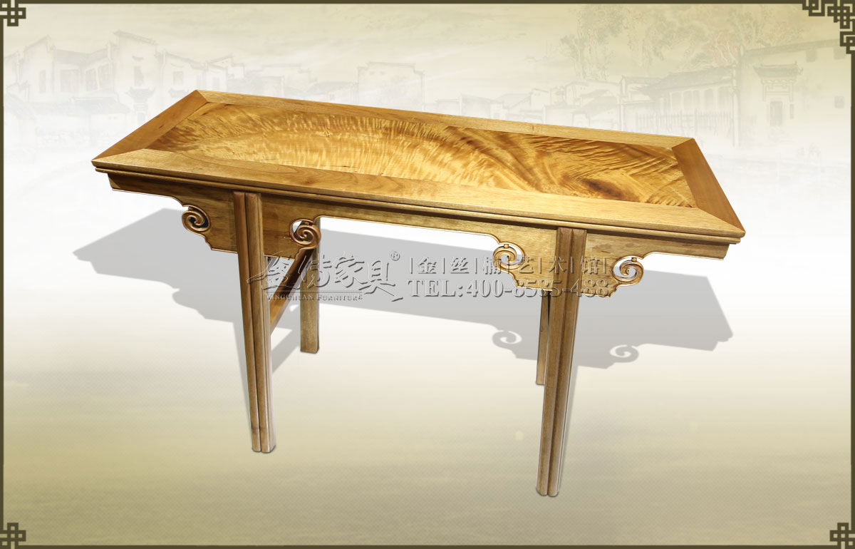 平頭案可上承博古擺設,置于室內貼墻壁、隔扇、欄桿擺放,或順著窗臺陳列,又可單獨陳設用以間隔室內空間,易與家具裝修搭配,非常實用。無論從用料、工藝、藝術等各方面來看,它都是名貴古典家具的代表之作。
