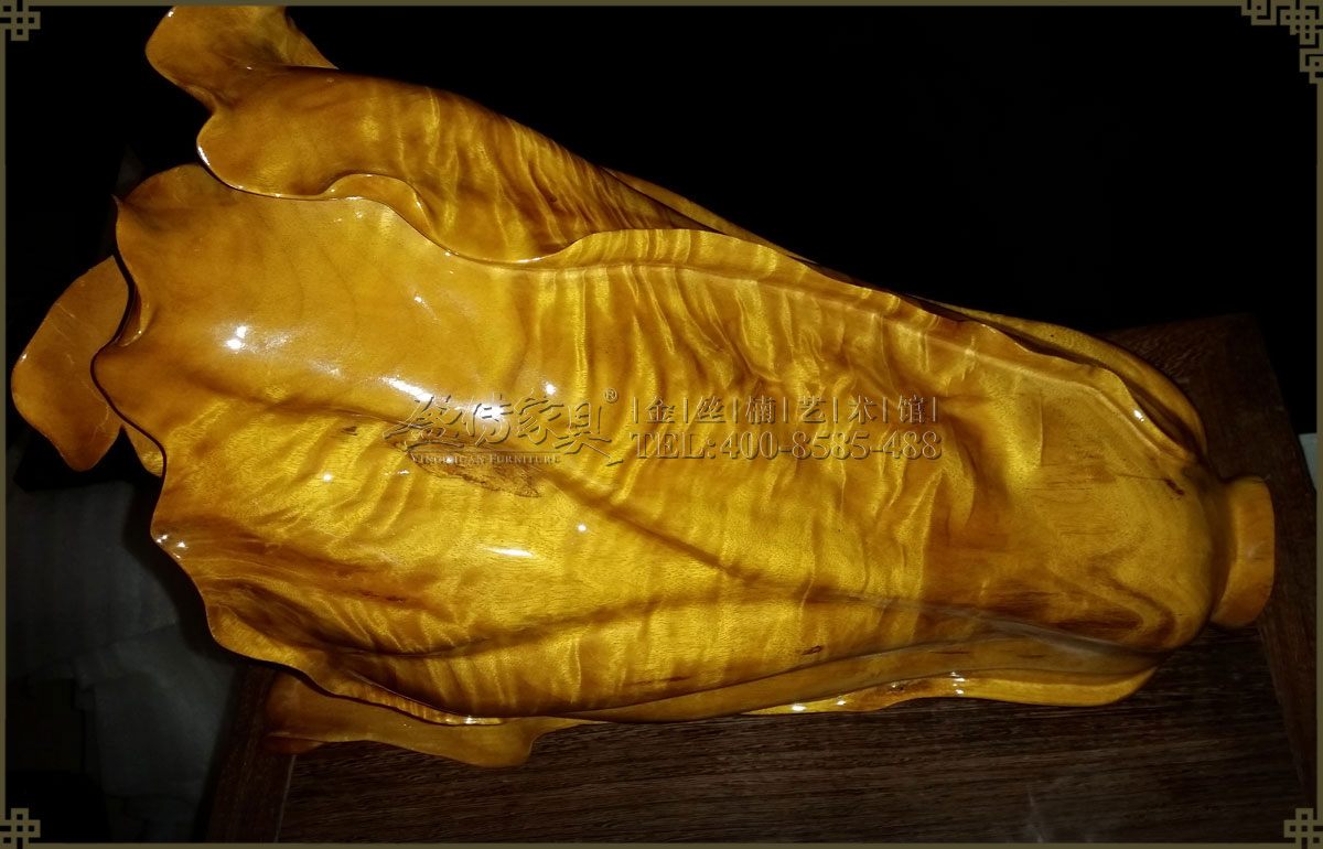 除了寓意美好,此金絲楠白菜本身非常絢麗漂亮,色澤如金,紋路精美,細節講究,線條優美,并配有穩重大方的雞翅木底座,無論是自用還是饋贈都大方體面。