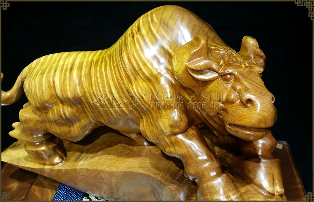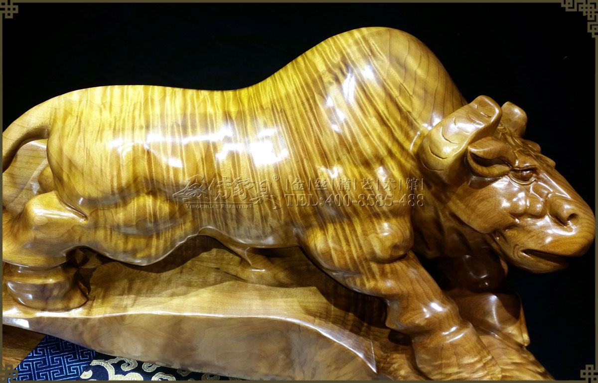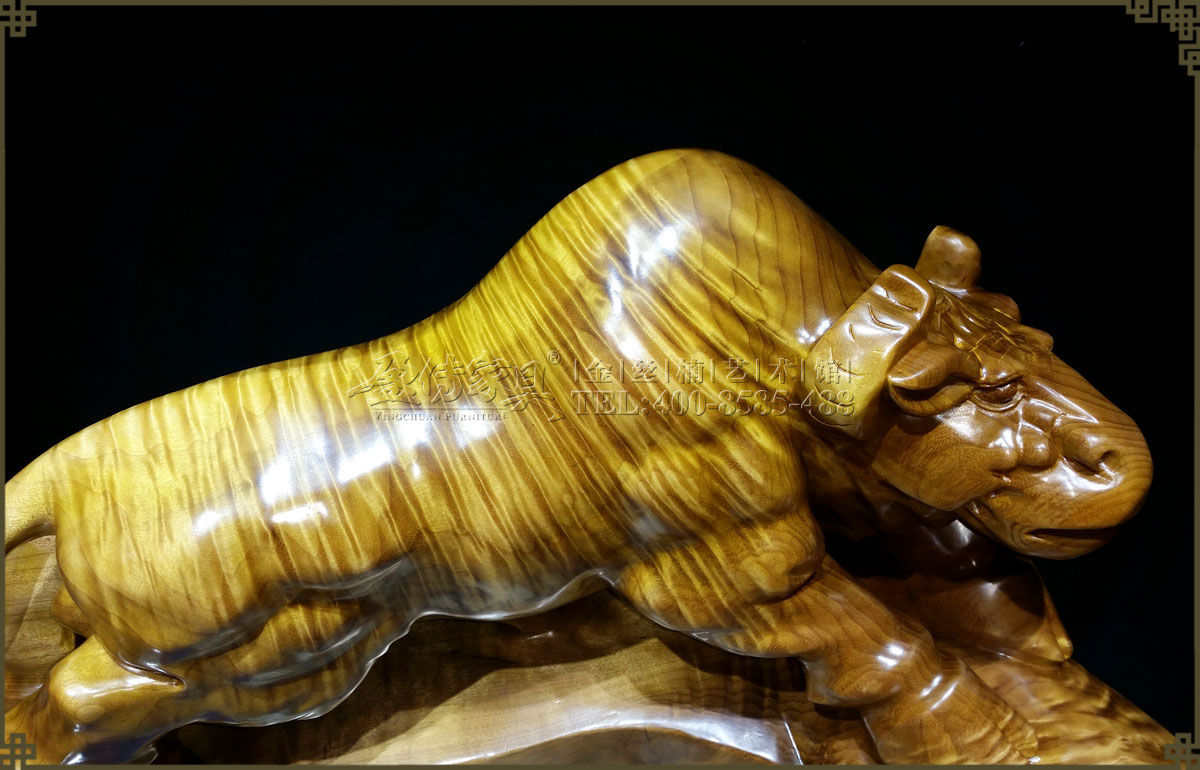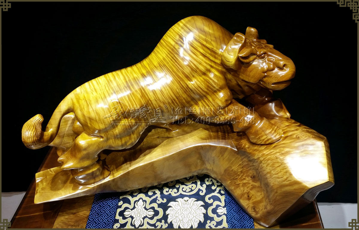 此金絲楠勁牛氣勢如虹,低頭向前,象征著堅韌執著,勤奮耕耘,不斷進取的精神,寓意如此努力將帶來滾滾財富。并且,其層次分明的水波紋有很強的立體感,清晰獨特,美不勝收,手感光滑柔潤,讓人愛不釋手,具有很高的收藏價值和欣賞價值。