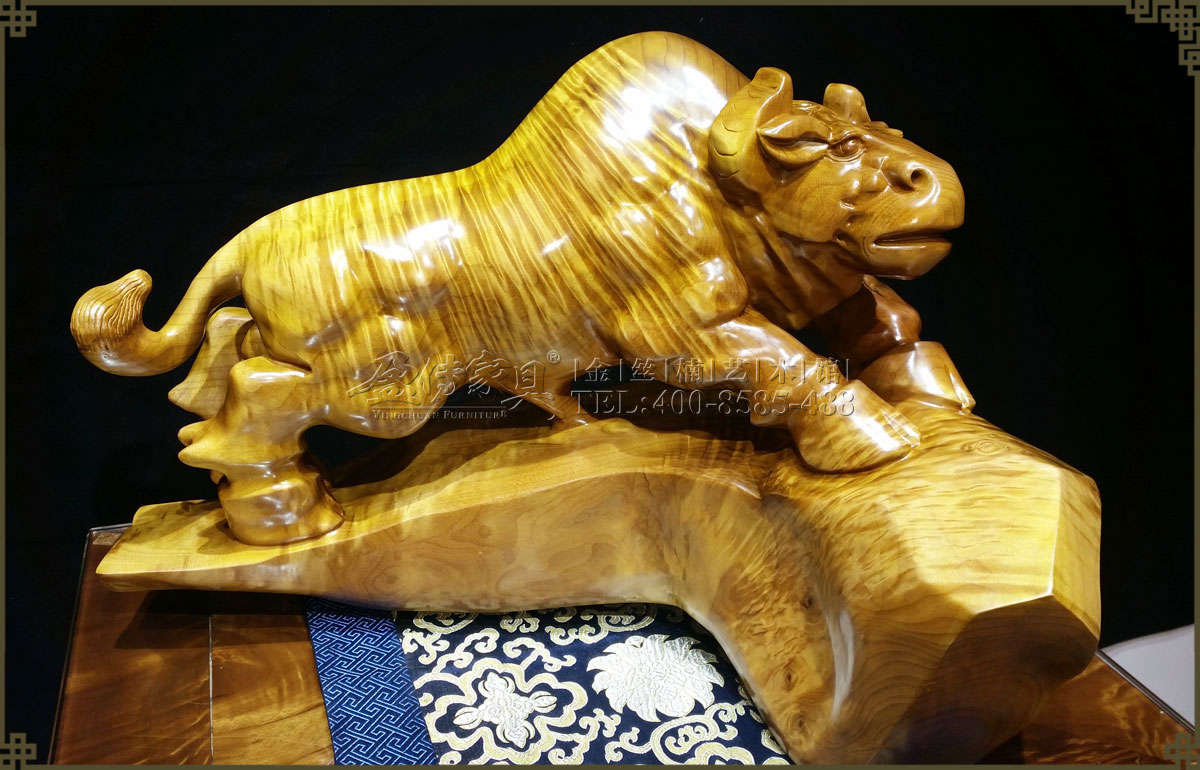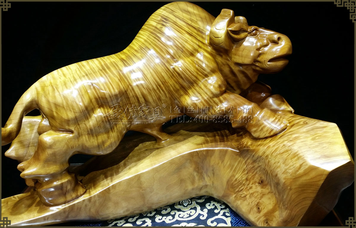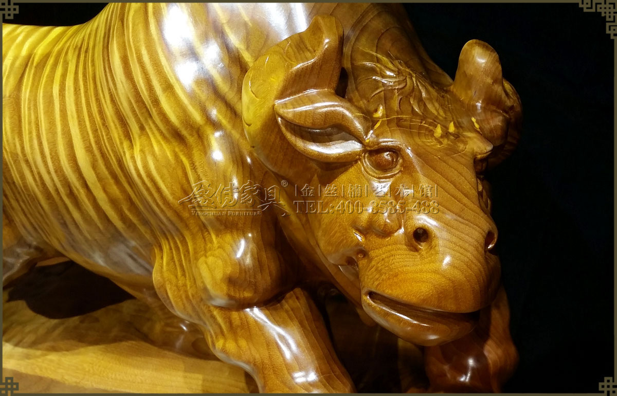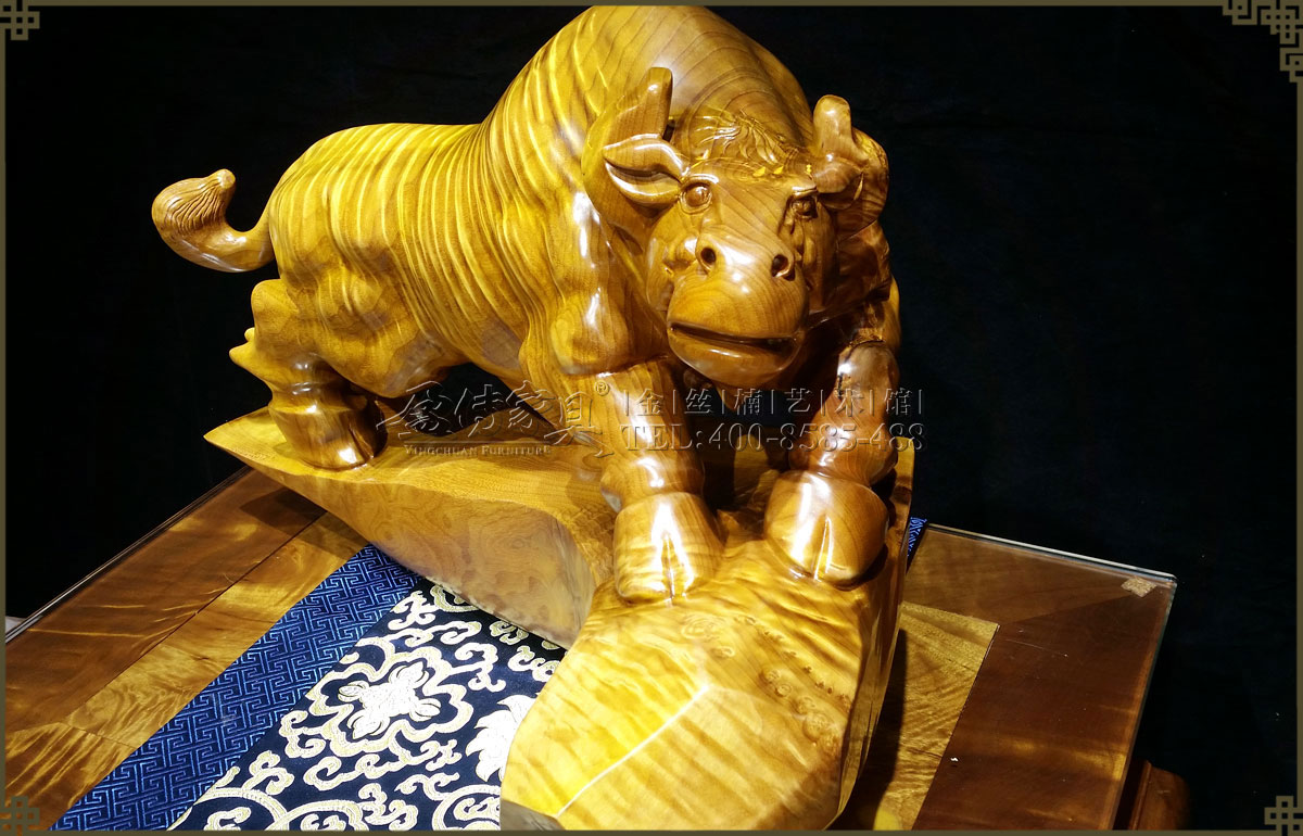 此金絲楠勁牛氣勢如虹,低頭向前,象征著堅韌執著,勤奮耕耘,不斷進取的精神,寓意如此努力將帶來滾滾財富。并且,其層次分明的水波紋有很強的立體感,清晰獨特,美不勝收,手感光滑柔潤,讓人愛不釋手,具有很高的收藏價值和欣賞價值。