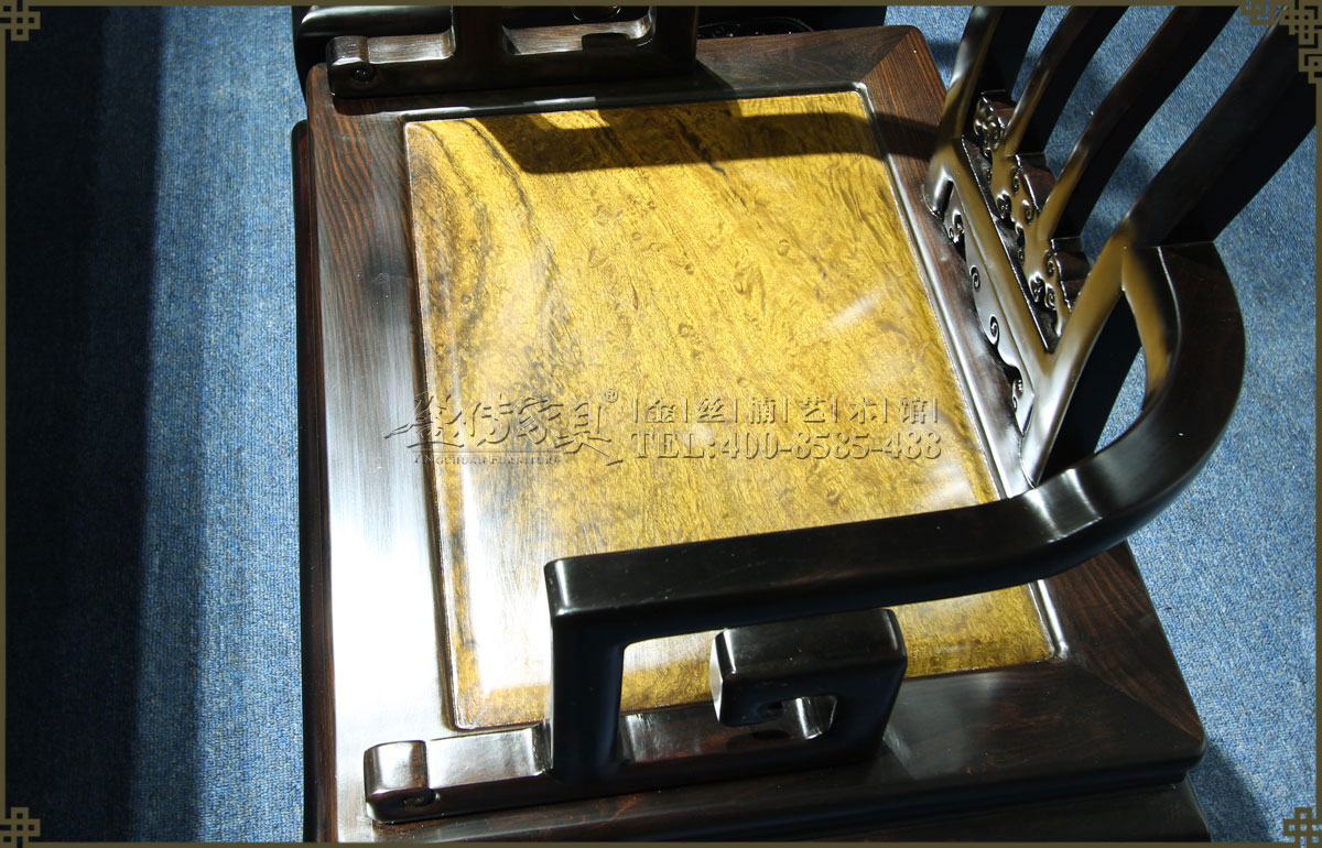 用黑檀做框架,更加沉穩,風格低調而精致。椅子造型獨特,線條流暢,在欣賞價值上更有情調,具有極高的收藏價值。