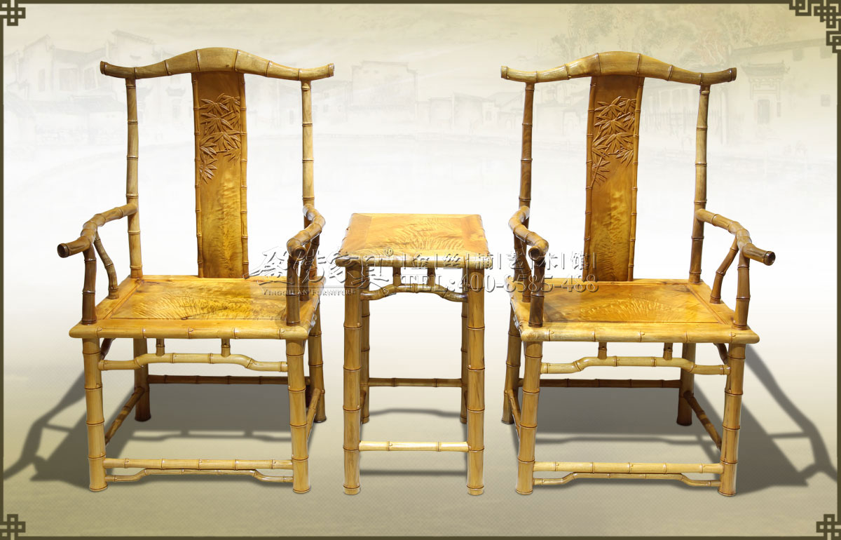 此金絲楠官帽椅結構緊湊,榫卯結構嚴密方正,比例協調、優美。雕刻手法非常精致,刀法要求嚴格,竹節圓潤逼真,充滿生氣,如真竹節一般。選料講究,用精良的金絲楠木雕刻成竹節形狀,獨具一格,既尊貴大方,金光閃爍,紋理璀璨奪目,又高雅含蓄、淡泊謙遜,陳設在文人的書齋或庭院,充滿藝術氣息,具有極高的收藏價值和欣賞價值。