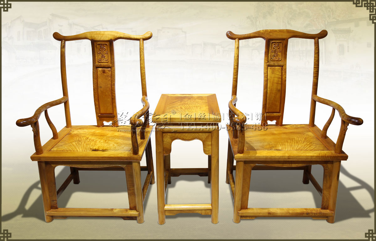 整體造型簡練、渾然有力、端莊大氣,氣質儒雅大方,雕刻簡潔美觀。制作嚴謹,“S”形背板造型貼合人體脊椎的造型,不僅靠坐舒適,也符合健康養生的人體工程學。使您無論在廳堂還是在書房,都從容坐鎮,安定祥和,是金絲楠木椅具中的精品之作,極具欣賞價值和收藏價值。