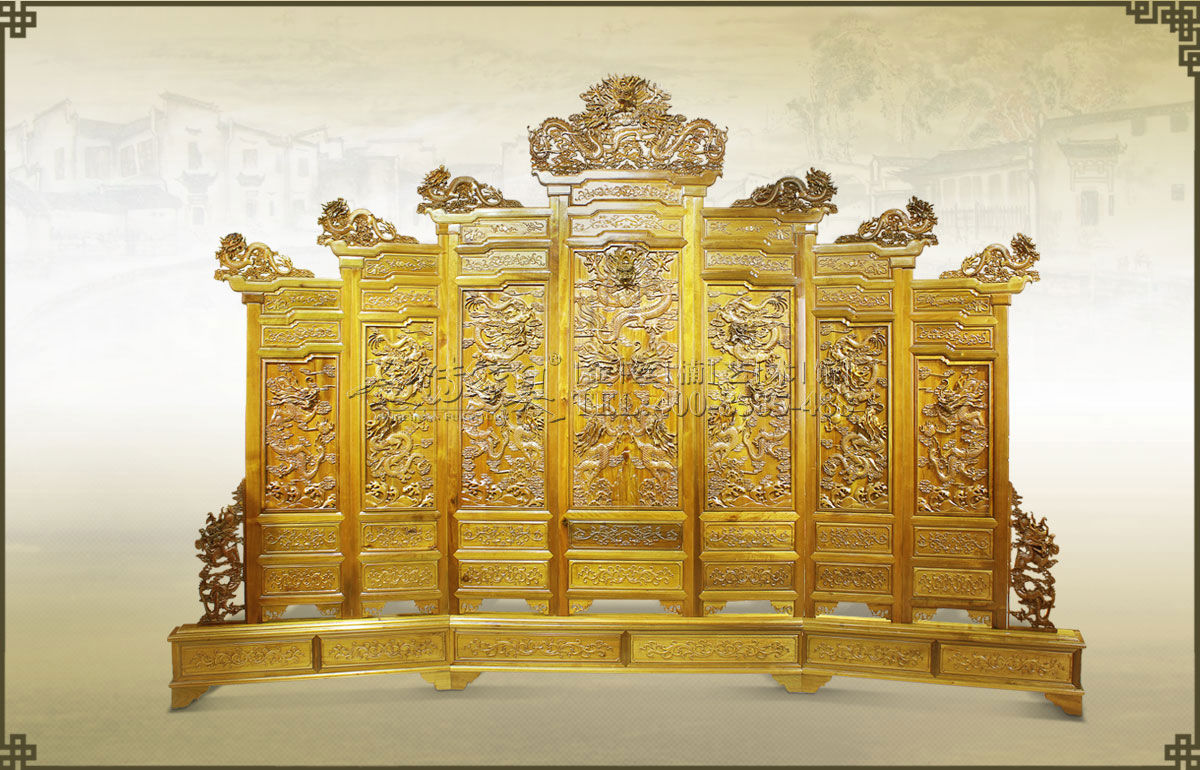 龍屬于最高等級的神獸,而龍紋是自古以來華夏民族崇拜的圖騰。歷代皇帝都以真龍?zhí)熳幼跃樱谬埣y作裝飾的家具、器物為帝王所專用。 此大屏風(fēng)極其珍貴,由木雕名匠精心雕滿了祥云...