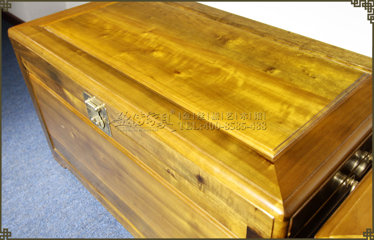 此金絲楠木箱款式大方,簡潔精致,散發(fā)古典氣息。金絲楠有防蟲防蛀、防腐除臭的獨一無二的功能,放置郵票、字畫、書籍,能很好地被珍藏保存;也可用于收納羊毛、羊絨、絲綢、棉麻、羽絨等高檔衣物,使衣物氣味芳香,沁人心脾。容量很大,儲物功能很強,經(jīng)久耐用,非常實用。