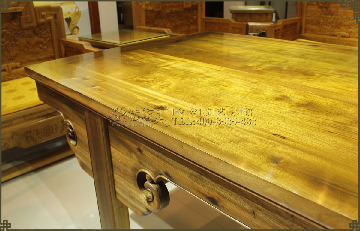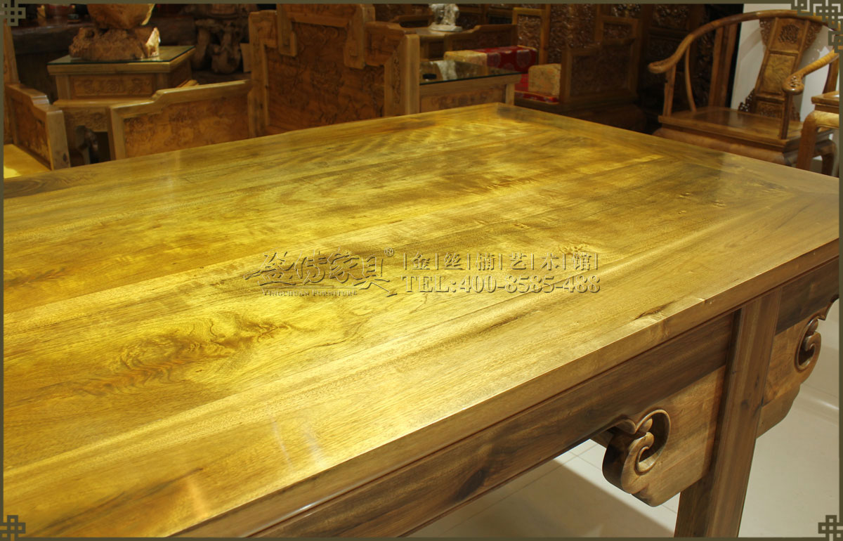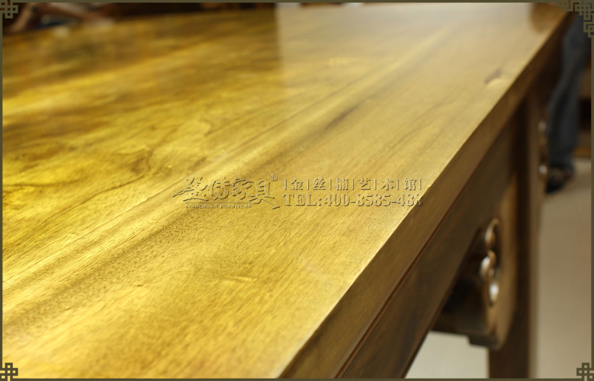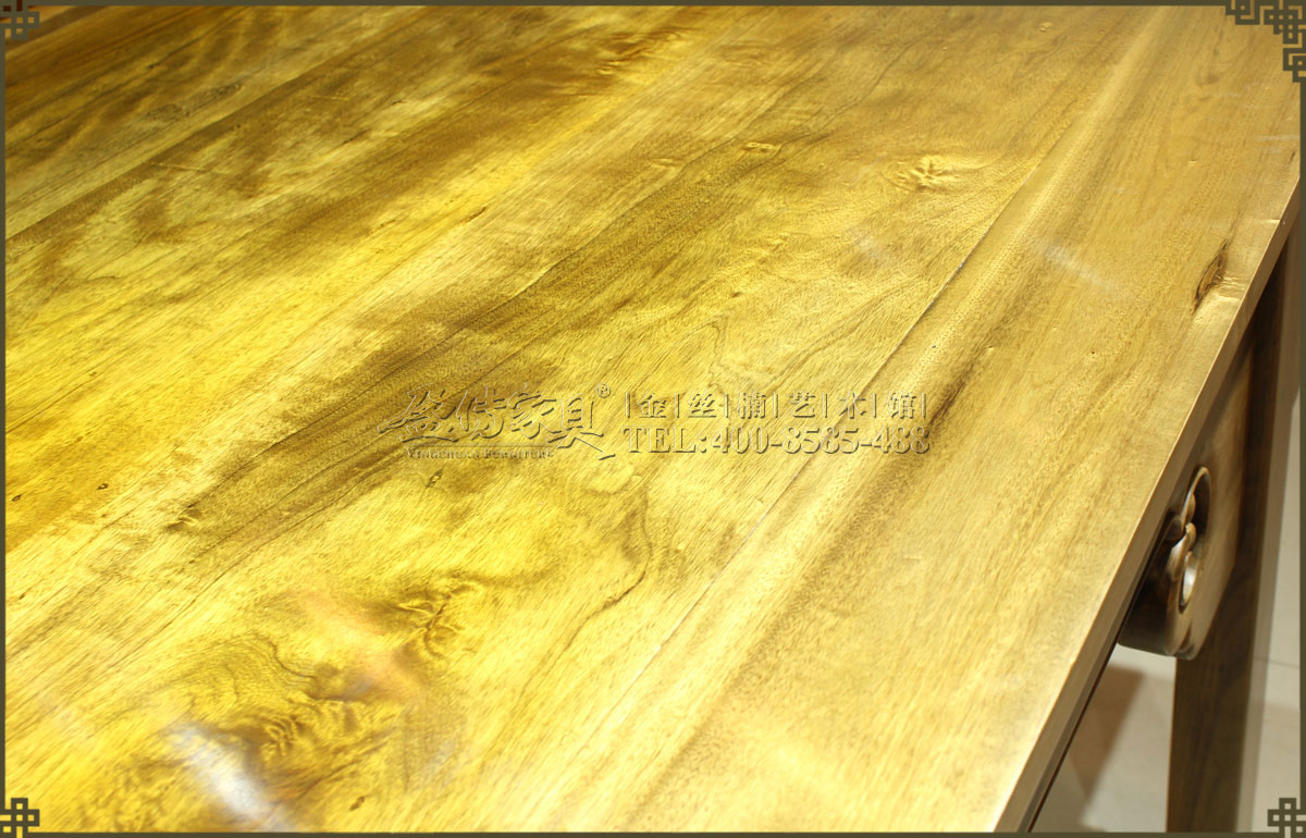 使用金絲楠優質木料,精制仿明式大畫案,紋理清晰漂亮,金絲閃耀。雖無雕刻裝飾,但倍感書香畫意、高雅大氣。造型簡練,線條流暢,打磨精細,而且足夠大,方便寫字作畫,乃文人墨客的喜愛之物,值得收藏和擁有。
