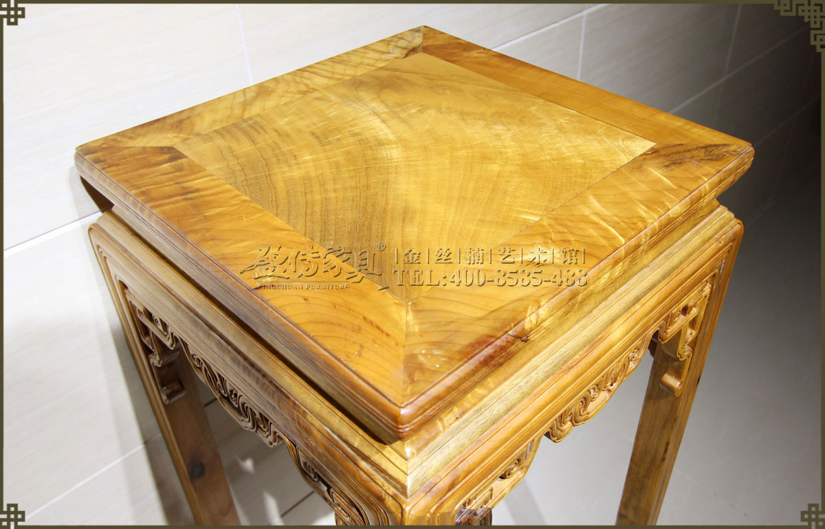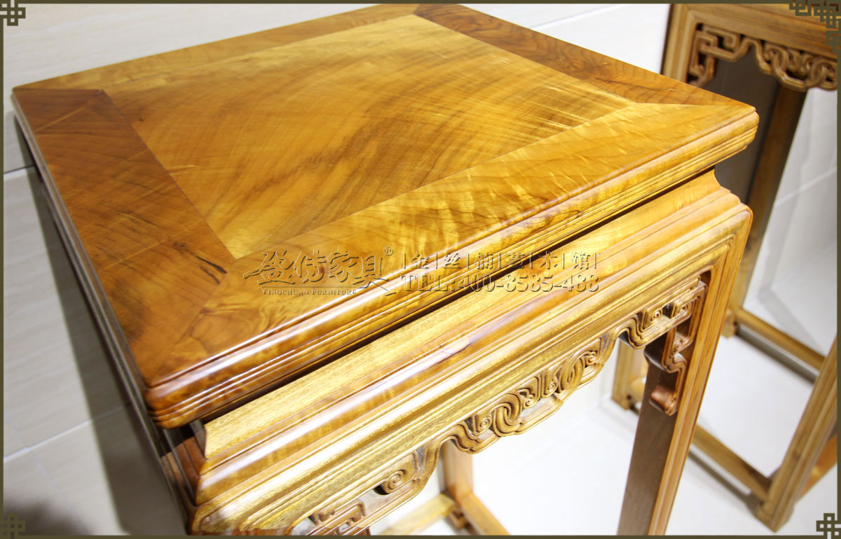 花幾也稱花架,承托花盆、盆景或其它小件擺設(shè)之用。此幾呈觀出貴氣大方的氣質(zhì),簡約大方,精致無比。紋路精美,幾腳修長,造型優(yōu)美,散發(fā)古典美麗,非常有格調(diào),能很好地裝飾您的家。