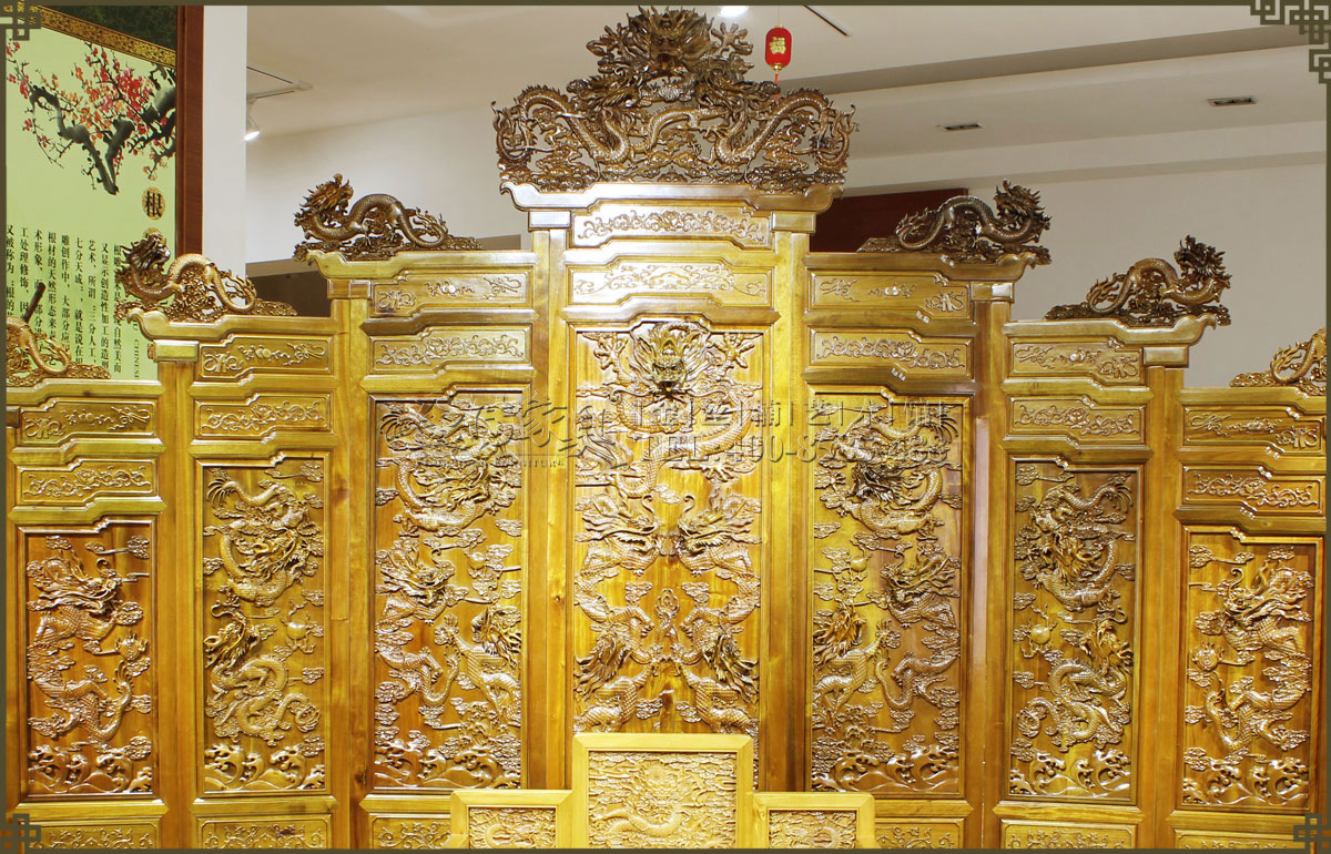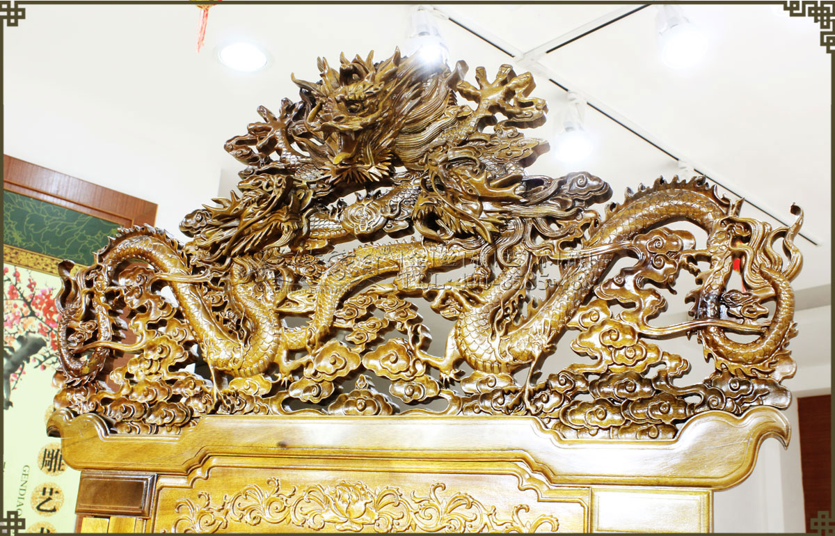 此大屏風極其珍貴,由木雕名匠精心雕滿了祥云龍圖案,將象征至高無上的龍騰圖案與大屏風融為一體。大氣恢弘的雄姿,精美絕倫的木雕藝術,威武霸氣,氣勢磅礴,至尊至貴,此乃古典家具中的珍寶,具有極高的藝術欣賞價值和收藏保值價值,無論擺在家中、公司、酒店都大氣大派,至尊至貴,彰顯著主人的顯赫榮耀和尊貴身份。