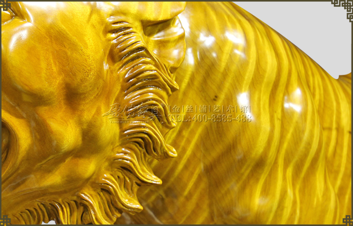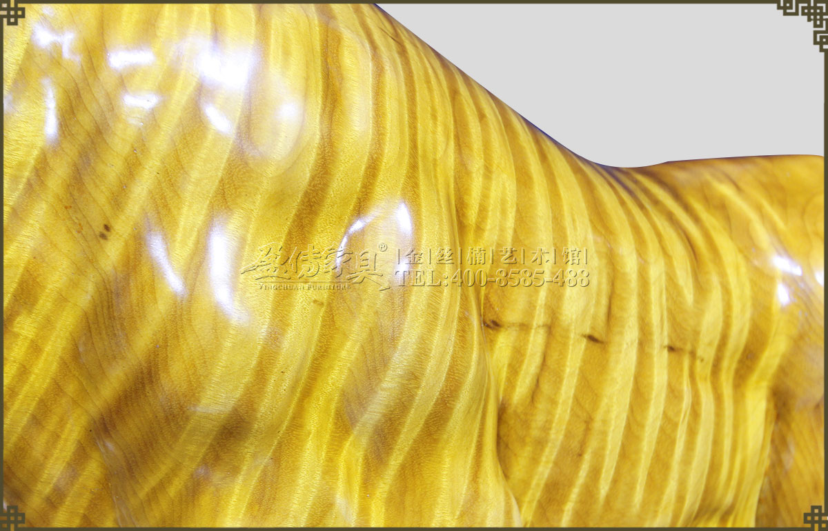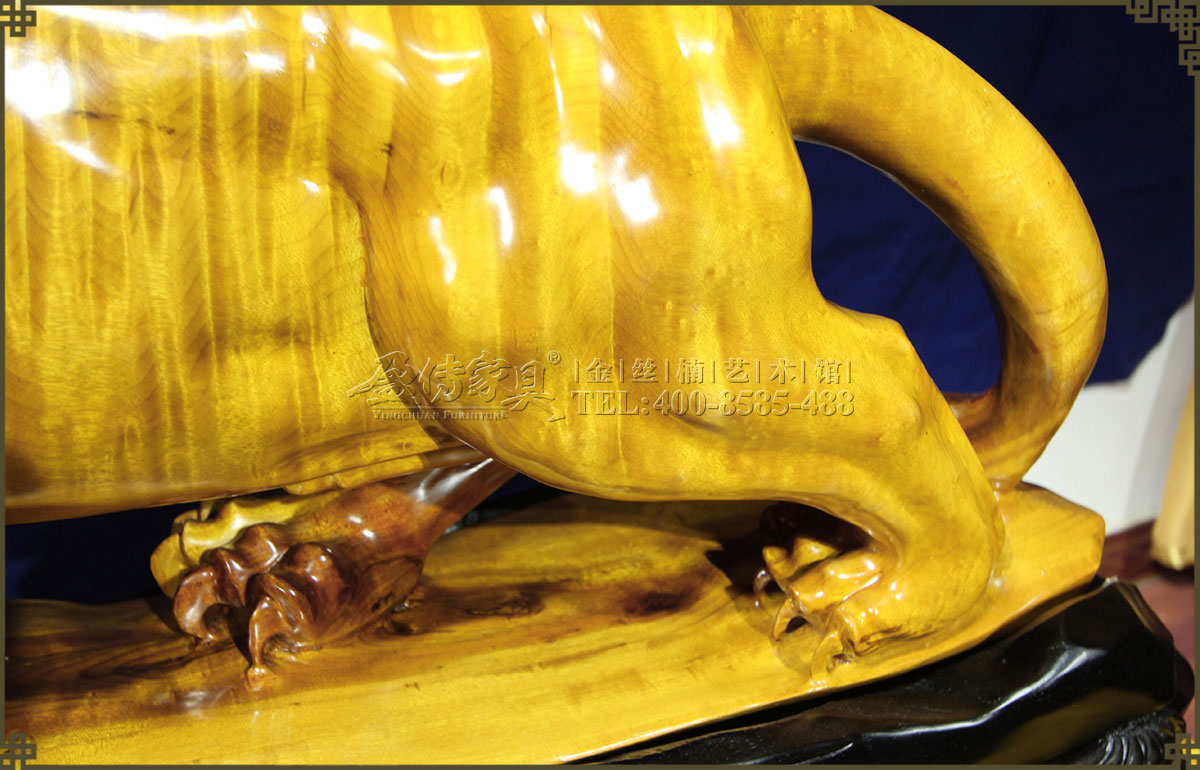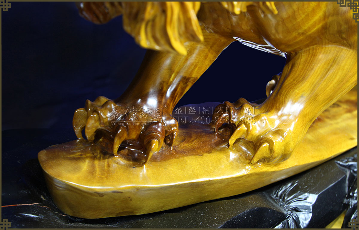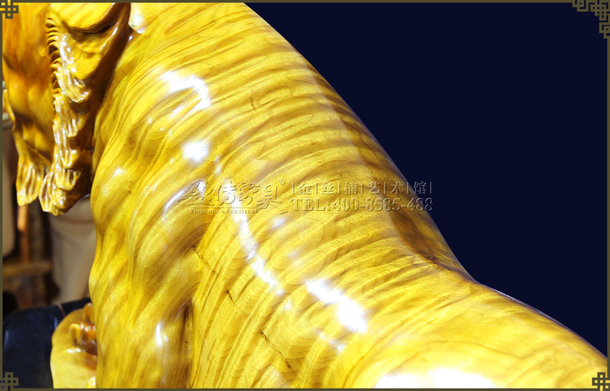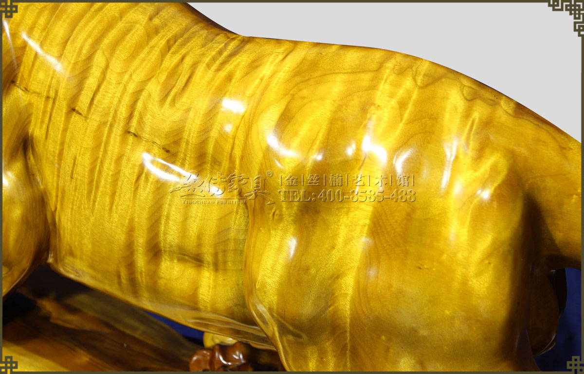 此金絲楠老虎藝術擺件手感極其光滑細膩,天然水波紋路清晰整齊,猶如真的虎皮呈現眼前,獨特又瑰麗,美不勝收。雕刻工藝精湛,栩栩如生,姿態威猛,氣勢無可抵擋,讓人能夠強烈感受到那股自然的野性,無論是自己欣賞、收藏或送禮都是極品之選。