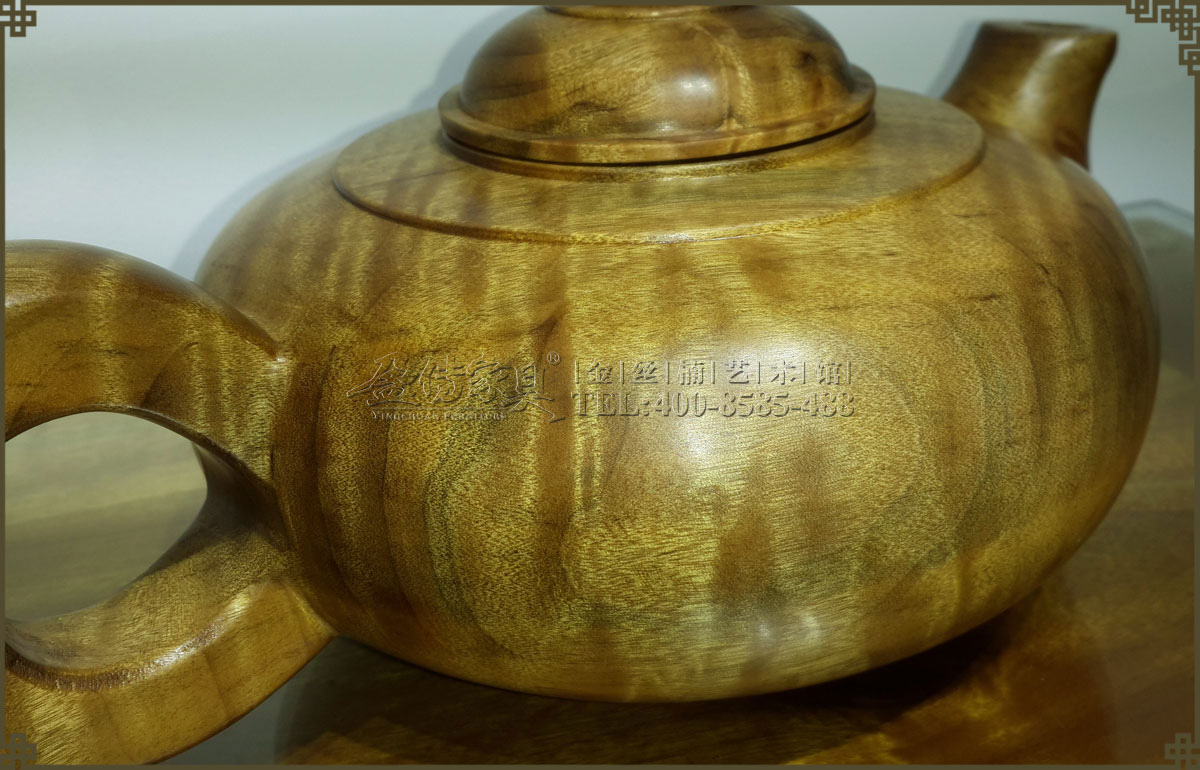 此金絲楠茶壺工藝大師精心手工雕刻,形態(tài)優(yōu)美,線條流暢,仿佛述說著“圓滿融通”的人生哲理。淡淡的水波紋彷如泛起漣漪的平靜湖面,讓觀賞的人內(nèi)心平和。金絲褶褶生輝,高雅華貴,整體卻高雅脫俗,韻味留長,保留著中國文化古典之美,這就是其獨特之處。無論放置于客廳還是辦公室、商務場所,都能體現(xiàn)主人極渾厚的文化內(nèi)涵和極高雅興的收藏品味。(注:此茶壺擺件僅作觀賞之用,不用于沏茶。)