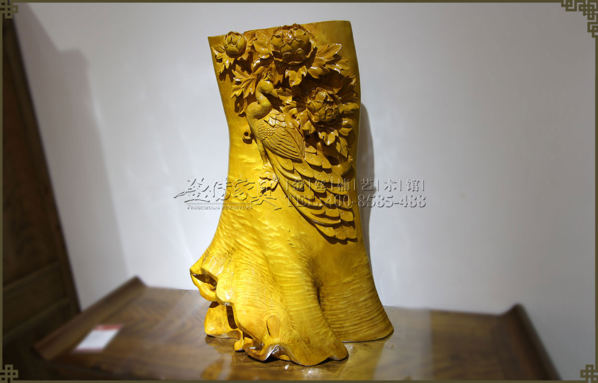 【名稱】:金絲楠鳳凰呈祥藝術擺件