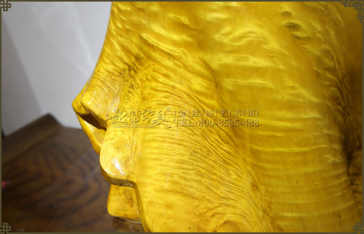 此金絲楠藝術擺件雕工精細,造型設計非常別致。雕刻的牡丹花富貴堂皇、國色天香,其雍容多姿的華貴之氣撲面而來,觀賞者仿佛都能夠聞到其濃郁花香。鳳凰,是古代傳說中的百鳥之王,一種代表幸福的靈物,象征著幸福和祥瑞,是五德具備的神鳥,意氣盎然地靜臥于牡丹從中,大氣從容的氣息立刻被散發了出來。放在室內不僅盡顯主人尊貴的品位,還使空間充滿祥和之氣。