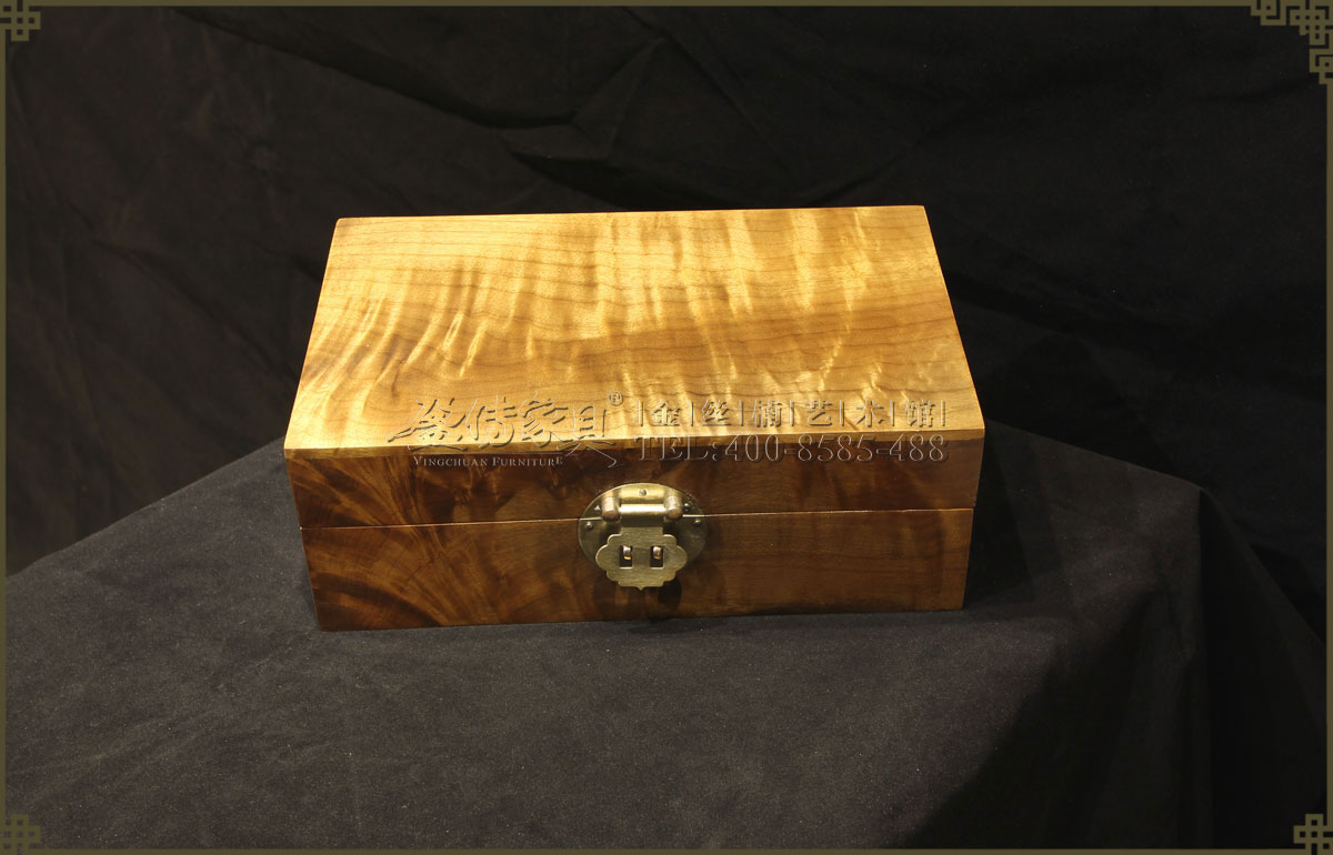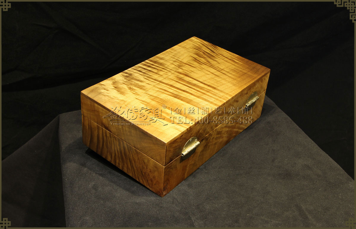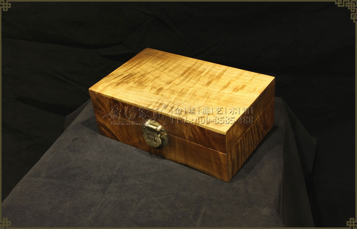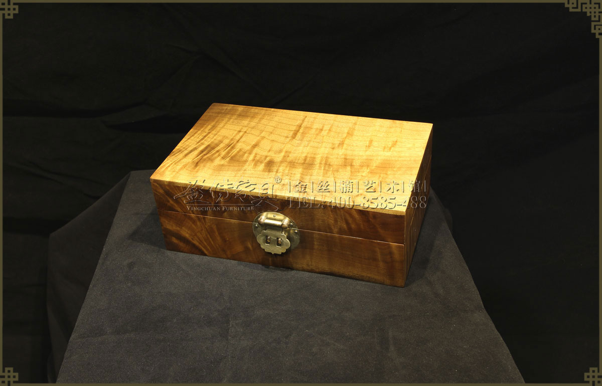 此金絲楠首飾盒散發閃閃金光,紋路獨特,絢麗華美,色澤漂亮。設計以簡潔大方取勝,以別致典雅見長,清秀細膩,低調奢華。散發清幽的木香之氣,令人心曠神怡。珍貴的首飾,重要的物件,就應該安放在如此精美的收納盒之中。