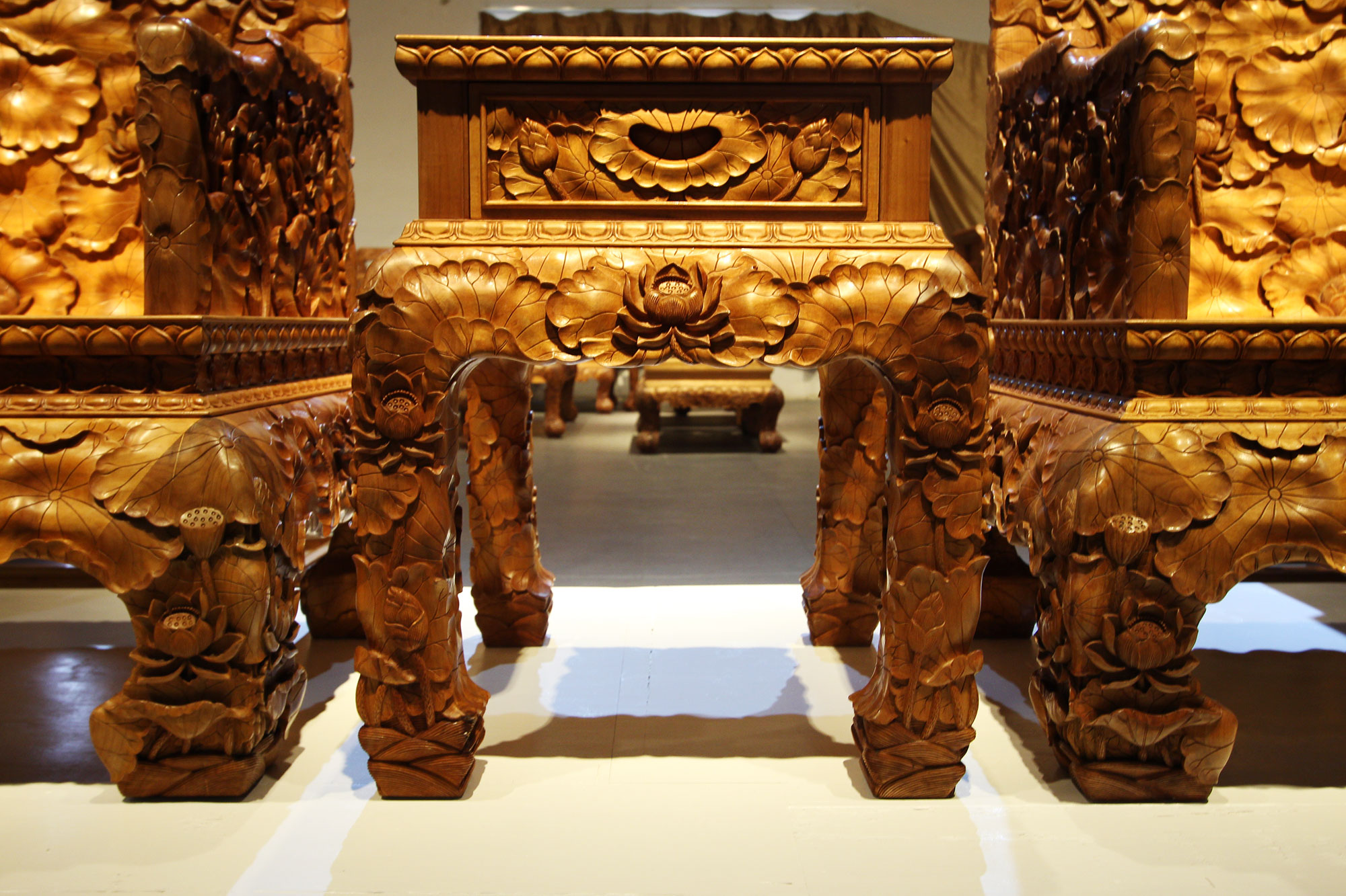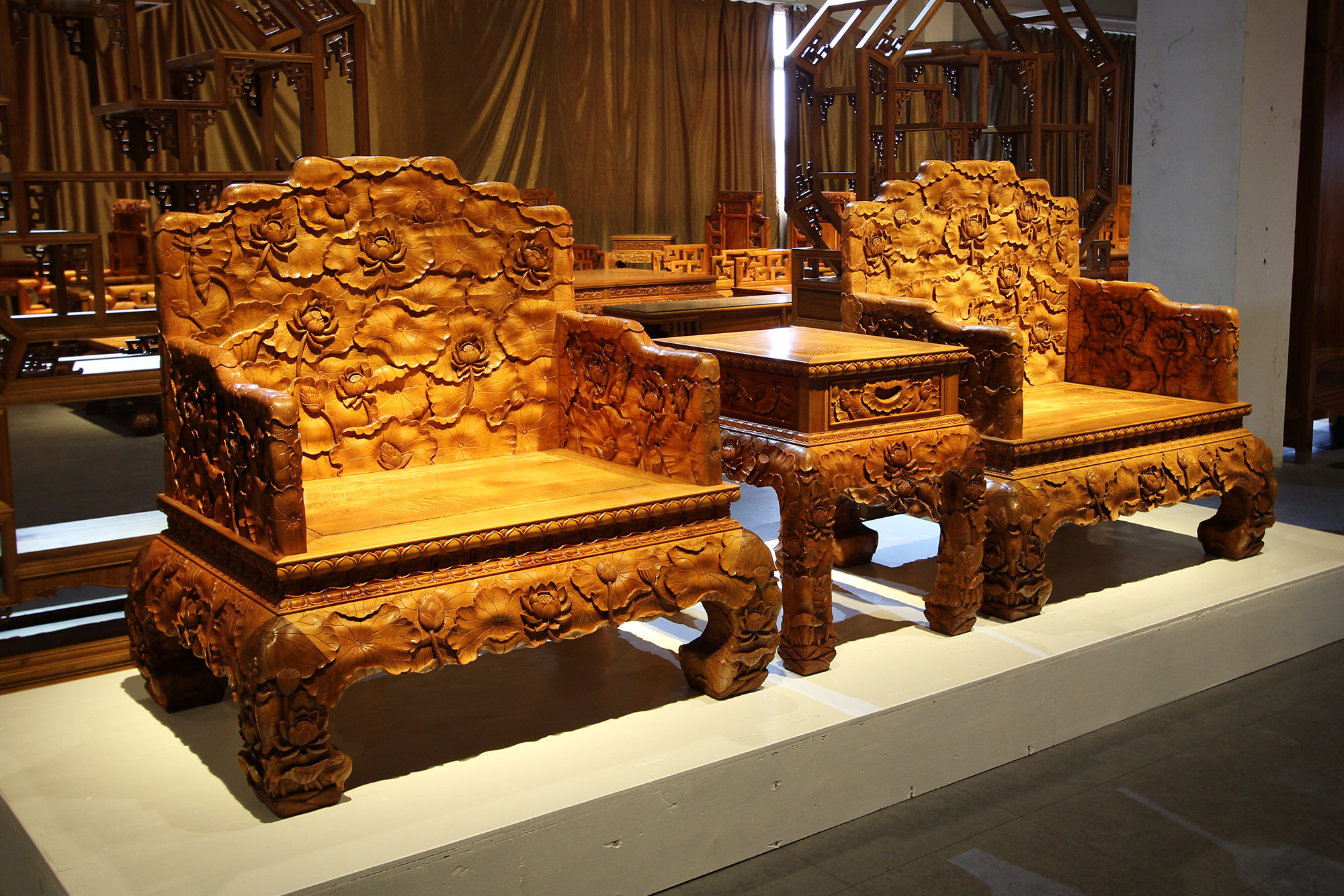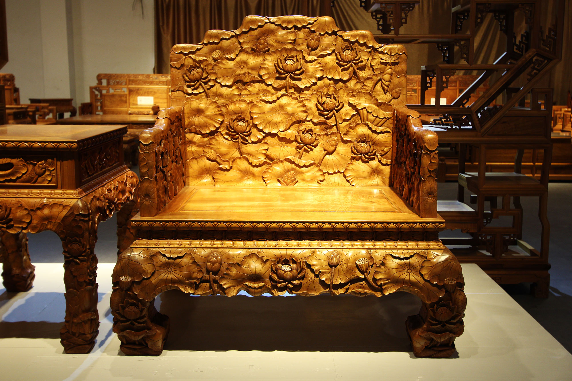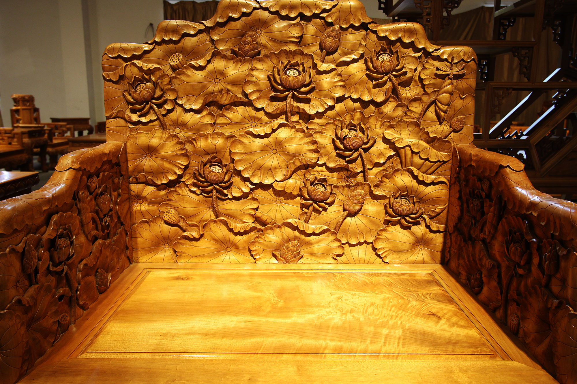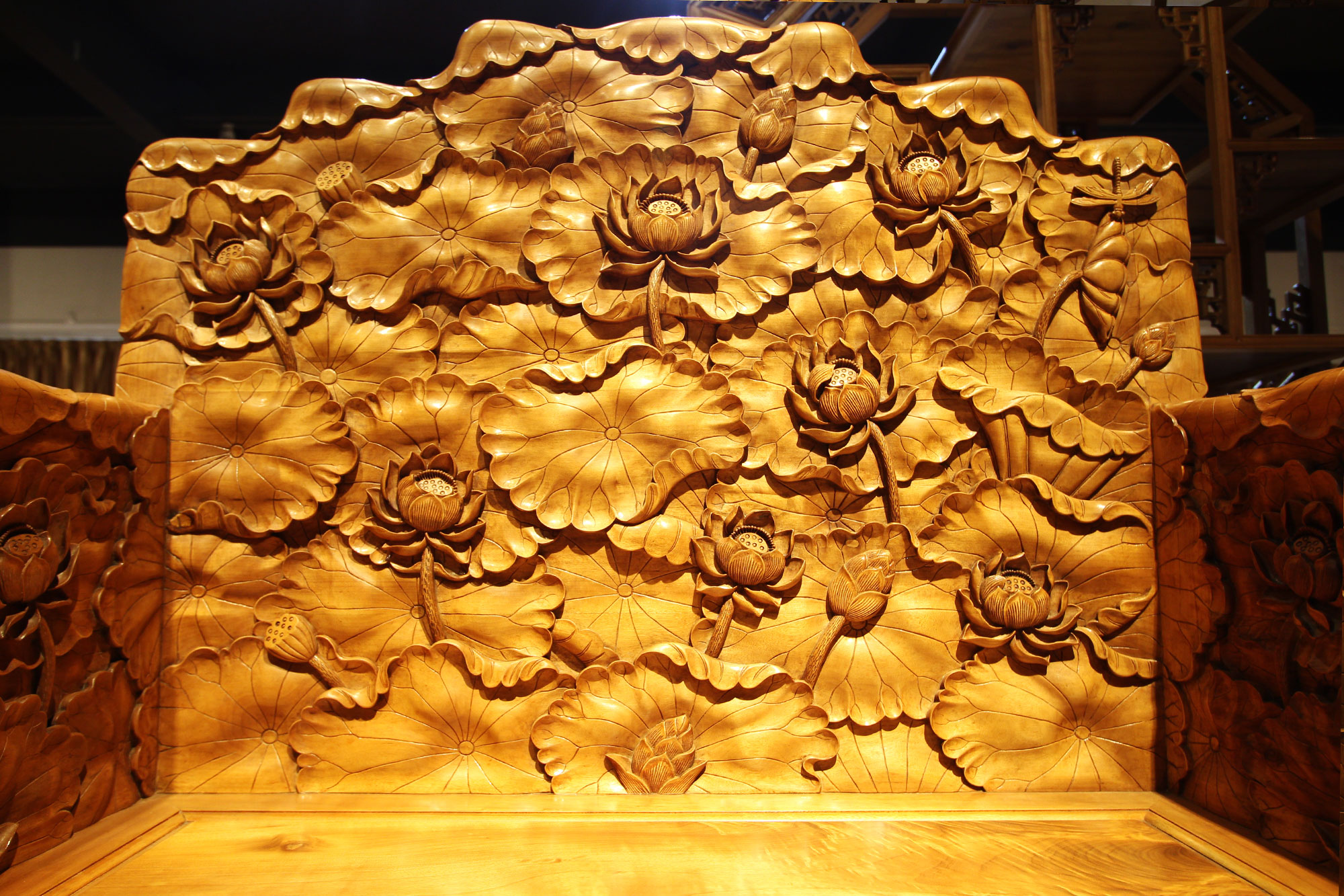 【產品名稱】:金絲楠滿雕花荷花寶座