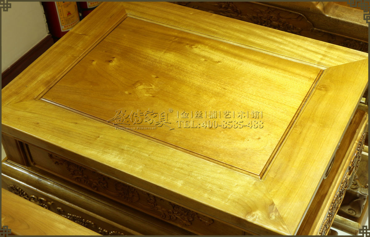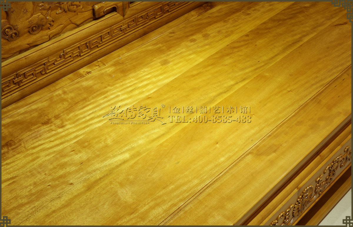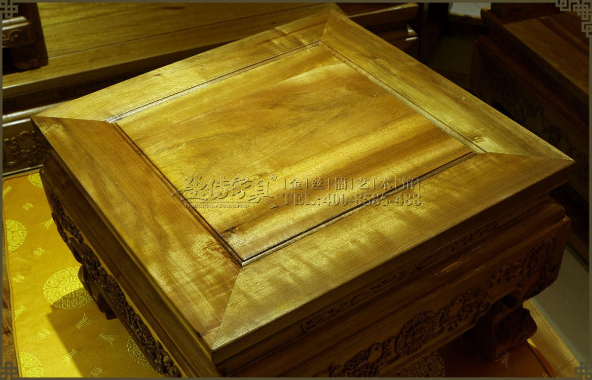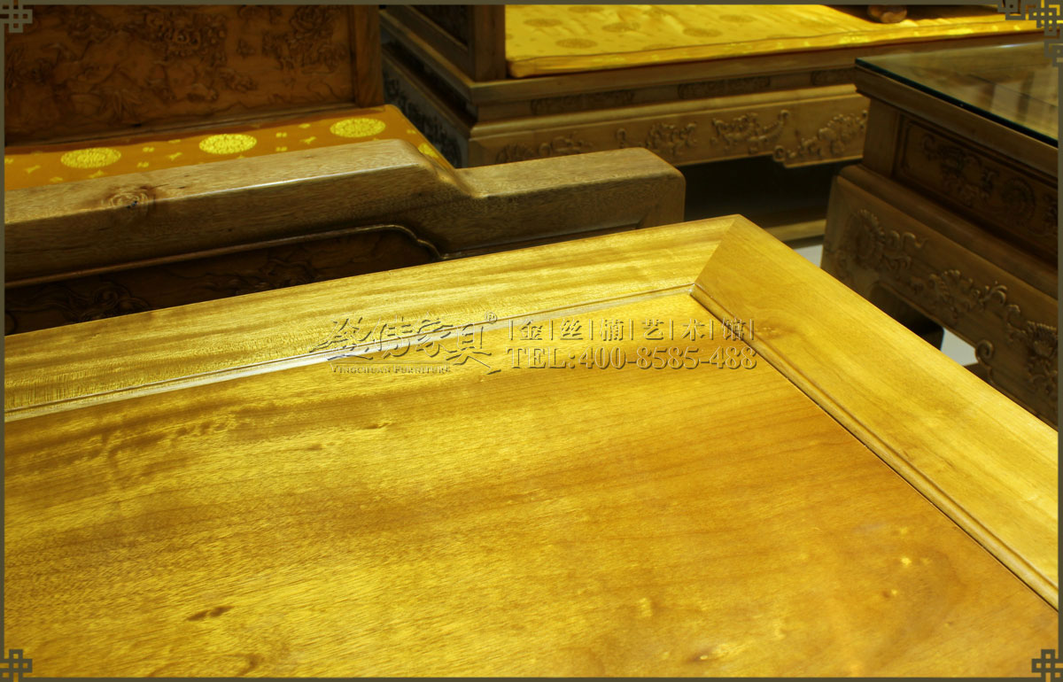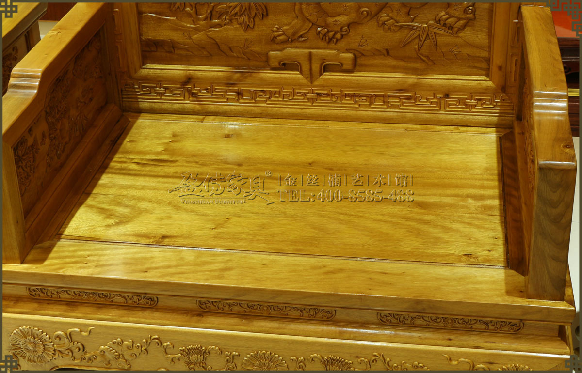此金絲楠乾隆麒麟寶座13件套為仿故宮博物院藏乾隆火麒麟寶座的款式,具備皇家風范,用料厚實,做工考究,打磨精細,雕刻繁多眩美,適宜在大客廳使用。大氣大派,大氣恢弘,奢華高貴,擺放于廳堂,淋漓盡致地體現主人顯赫尊崇的地位及大富大貴的豪門身份。其堪稱古典家具中的珍品,具有極高的藝術欣賞價值和收藏保值價值。