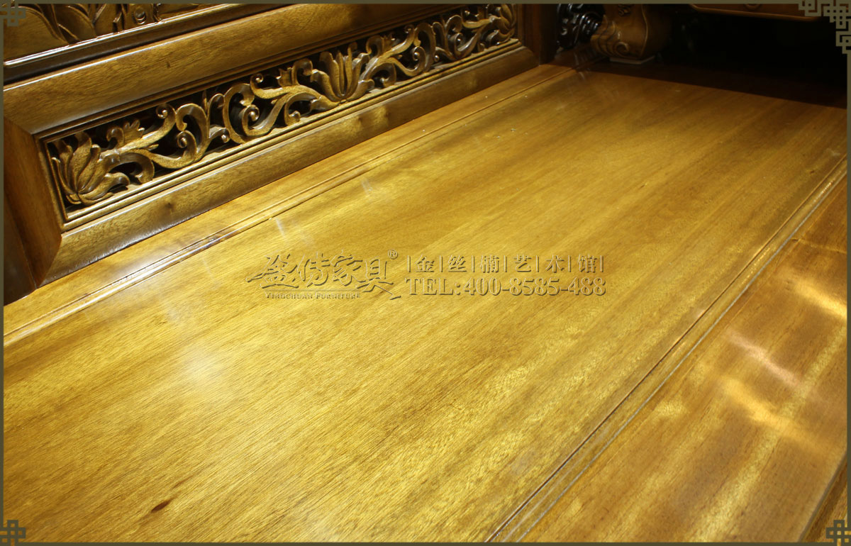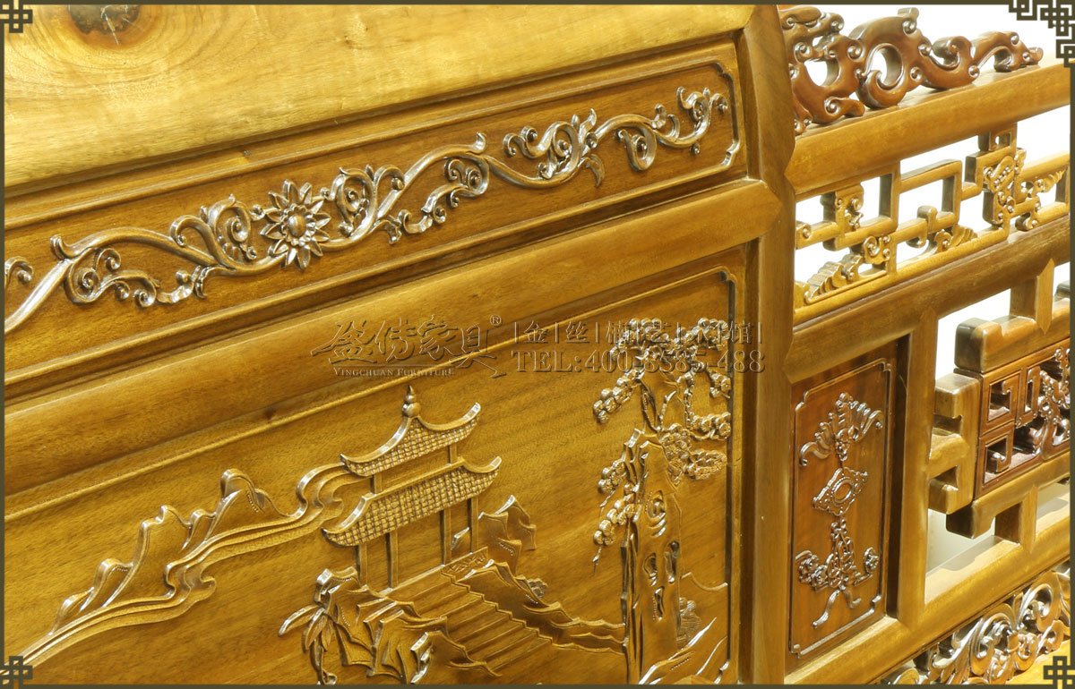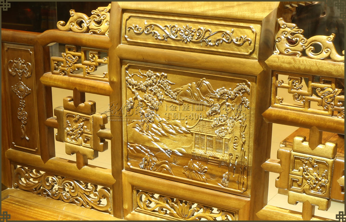 “讀書破萬卷,下筆如有神”。此金絲楠客廳椅的創意是“家藏萬卷書”、“書中自有黃金屋”。能工巧匠使用上等的金絲楠老料,精工制造7件組合式客廳椅,擺在客廳之內,頓覺滿堂書香,既不失文人墨客的儒雅,又顯得富貴大氣。
