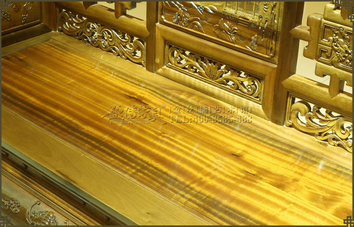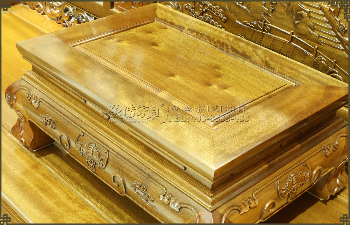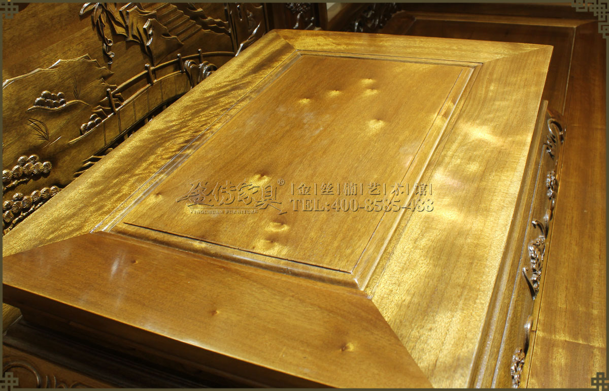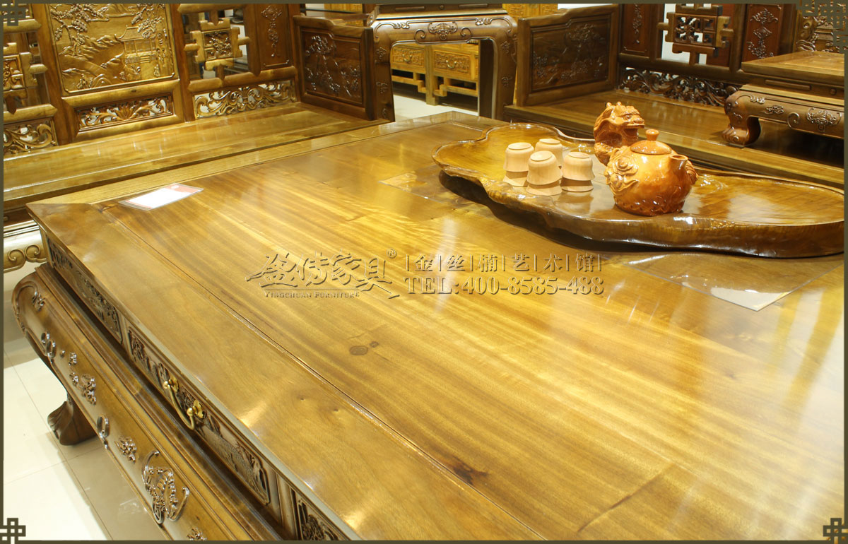“讀書破萬卷,下筆如有神”。此金絲楠客廳椅的創意是“家藏萬卷書”、“書中自有黃金屋”。能工巧匠使用上等的金絲楠老料,精工制造7件組合式客廳椅,擺在客廳之內,頓覺滿堂書香,既不失文人墨客的儒雅,又顯得富貴大氣。