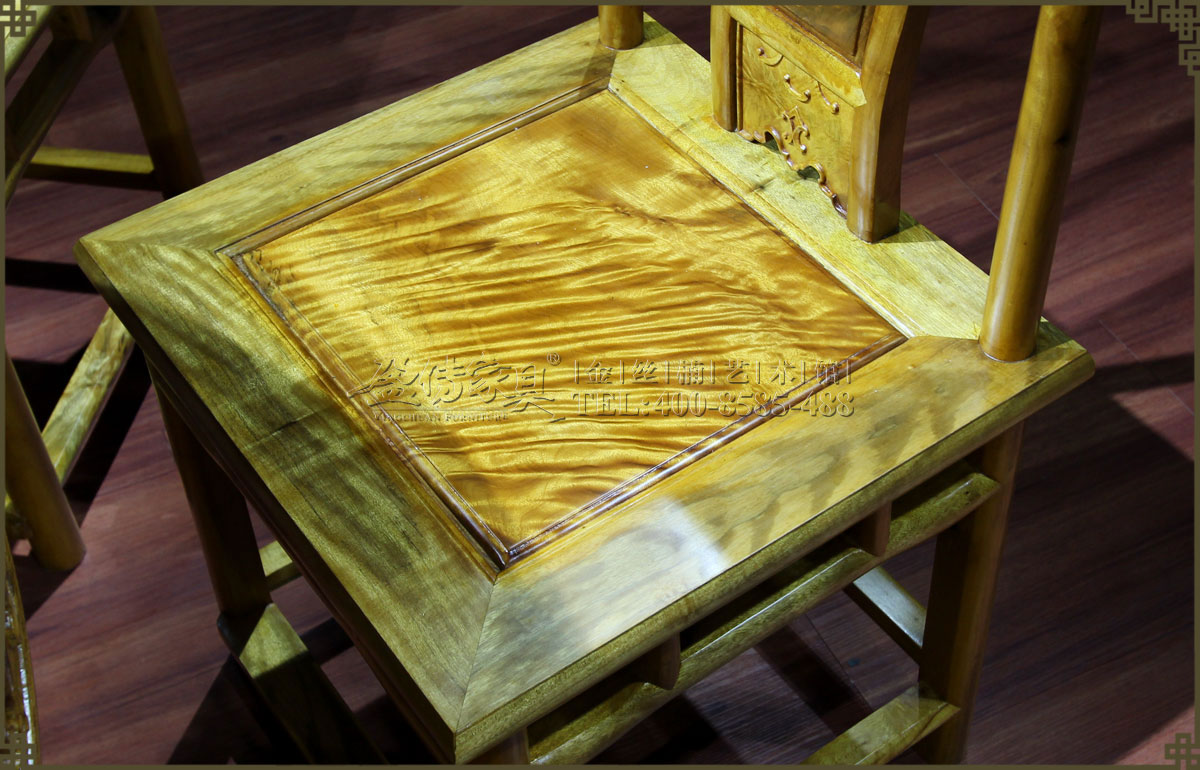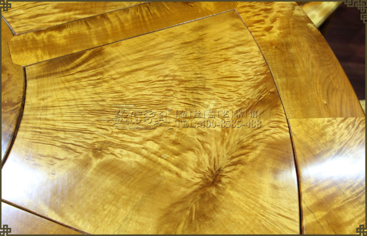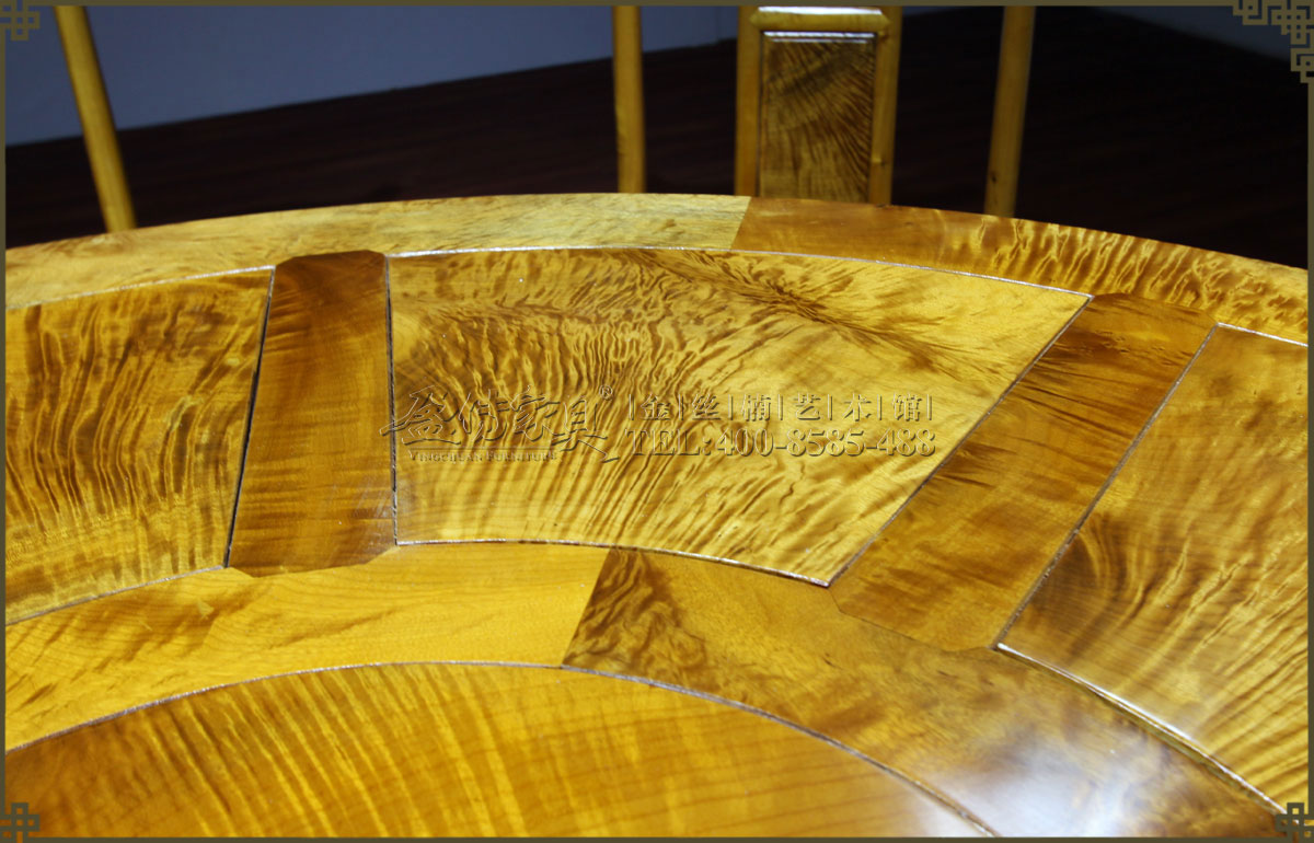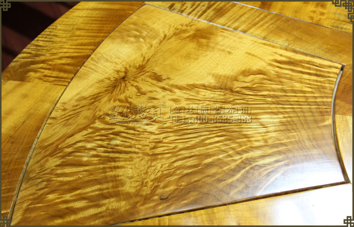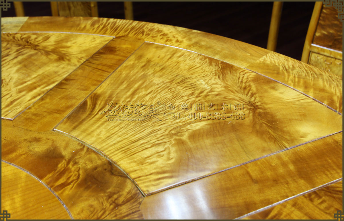 氣派、豪華的滿波紋路金絲楠大圓餐臺9件套。整個桌面和所有的椅面都布滿密集、立體、清晰的水波紋,熠熠生輝,金碧輝煌,讓你用餐前先享受視覺盛宴,美得驚人,具有極高的收藏價值和藝術欣賞價值!放于家中、會所、酒店招待客人,尤其體面,必定令人驚訝務必,一見難忘,嘖嘖稱贊。